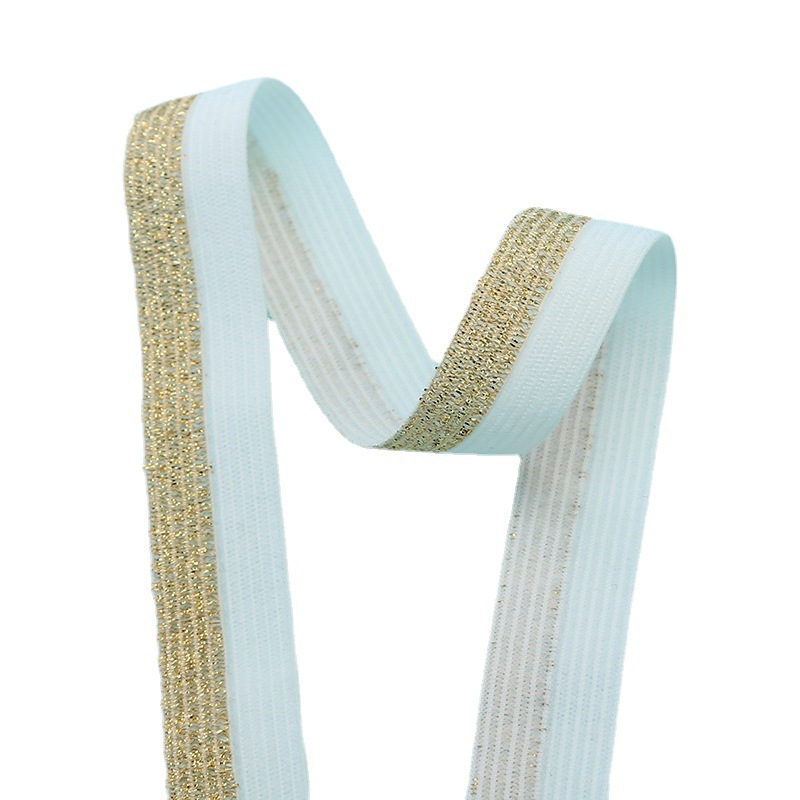 ![]() | Name: Gold and Silver Wire Elastic Band Specification: 1.0cm Color: Custom color available Material: Nylon Spandex Usage: Wedding dress wristband jewelry decoration, elastic fabric belt for trousers clothing accessories. |