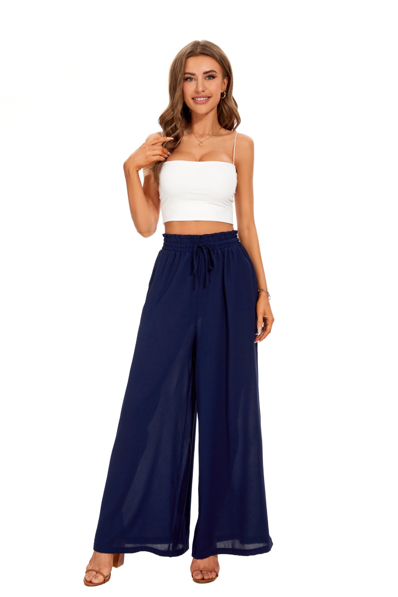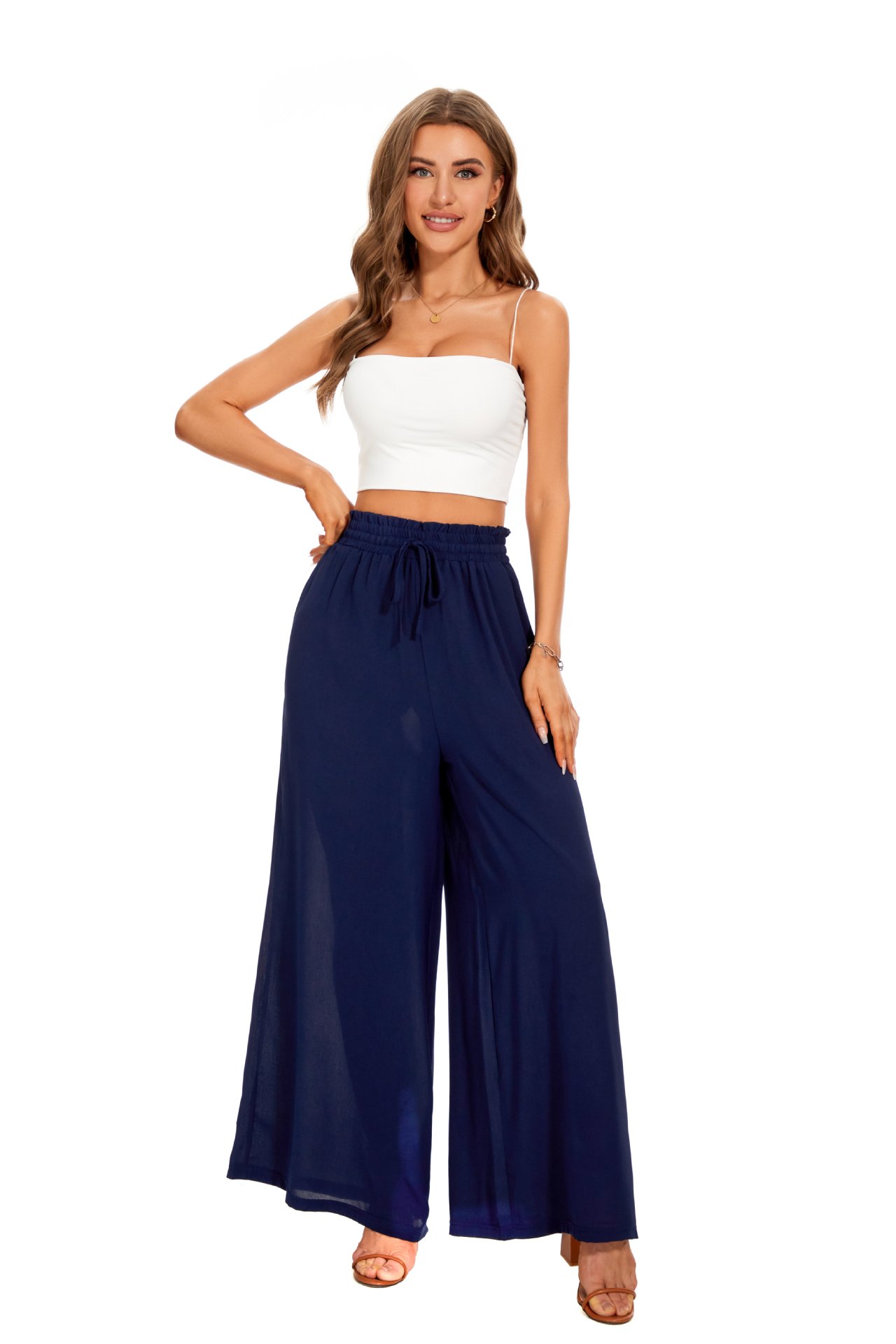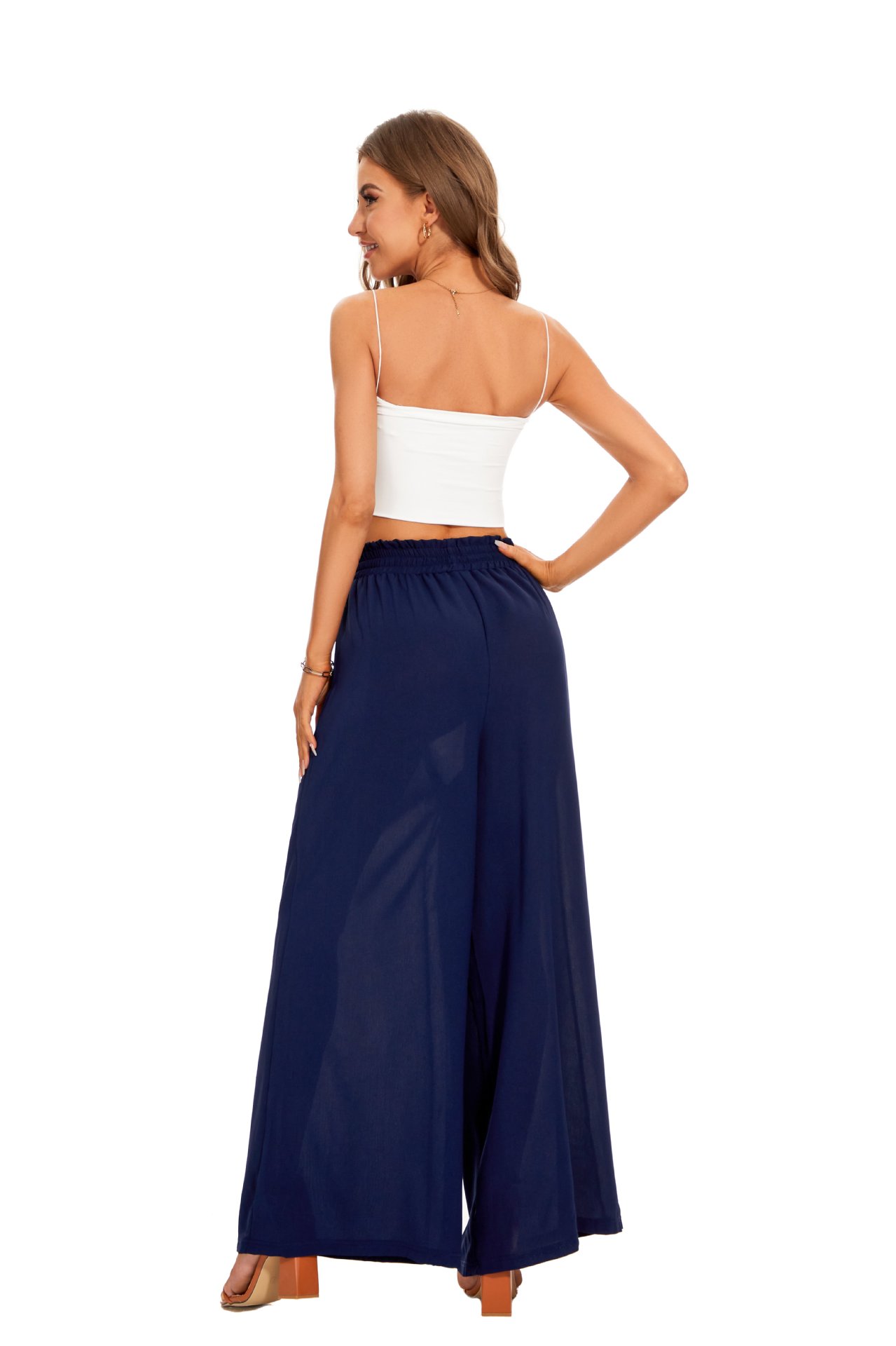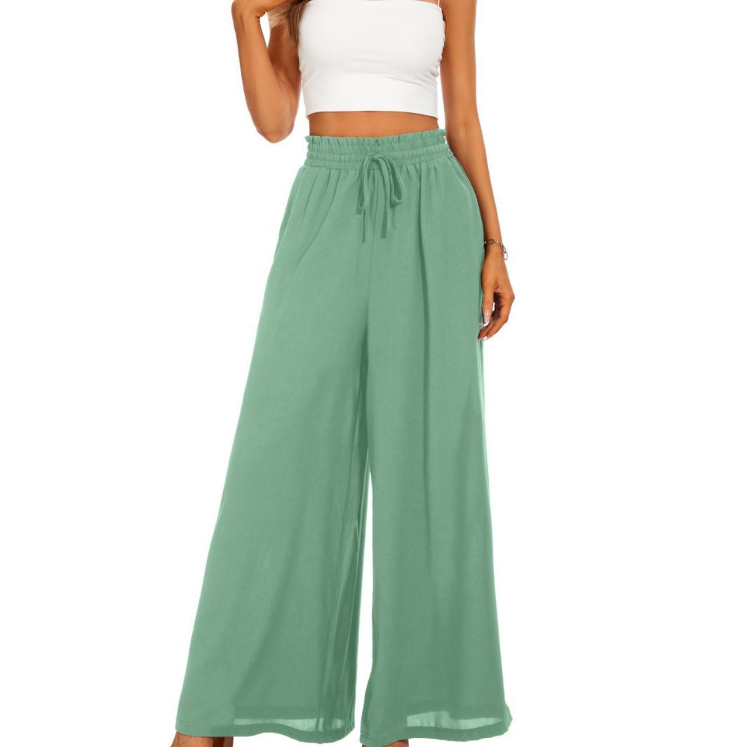 2025 europe and america cross border summer new women's wide-leg pants elastic waistband wide leg high waist long culottes for women