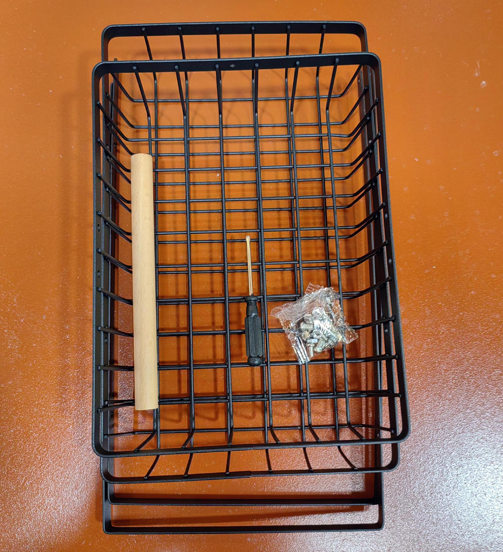 Configuration: 1 large and 1 small basket each, 2 double-layer support sides, wooden handle, instruction manual, screw accessory package, and screwdriver.