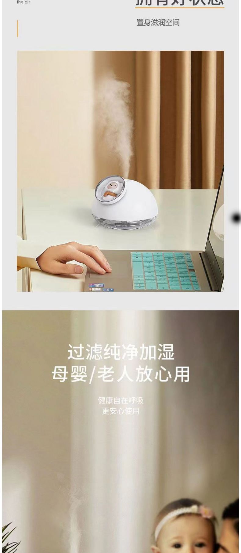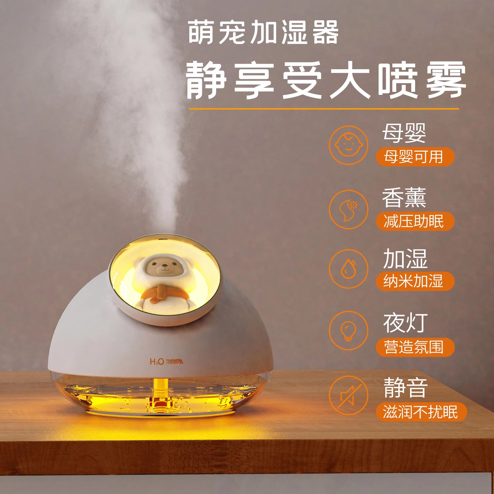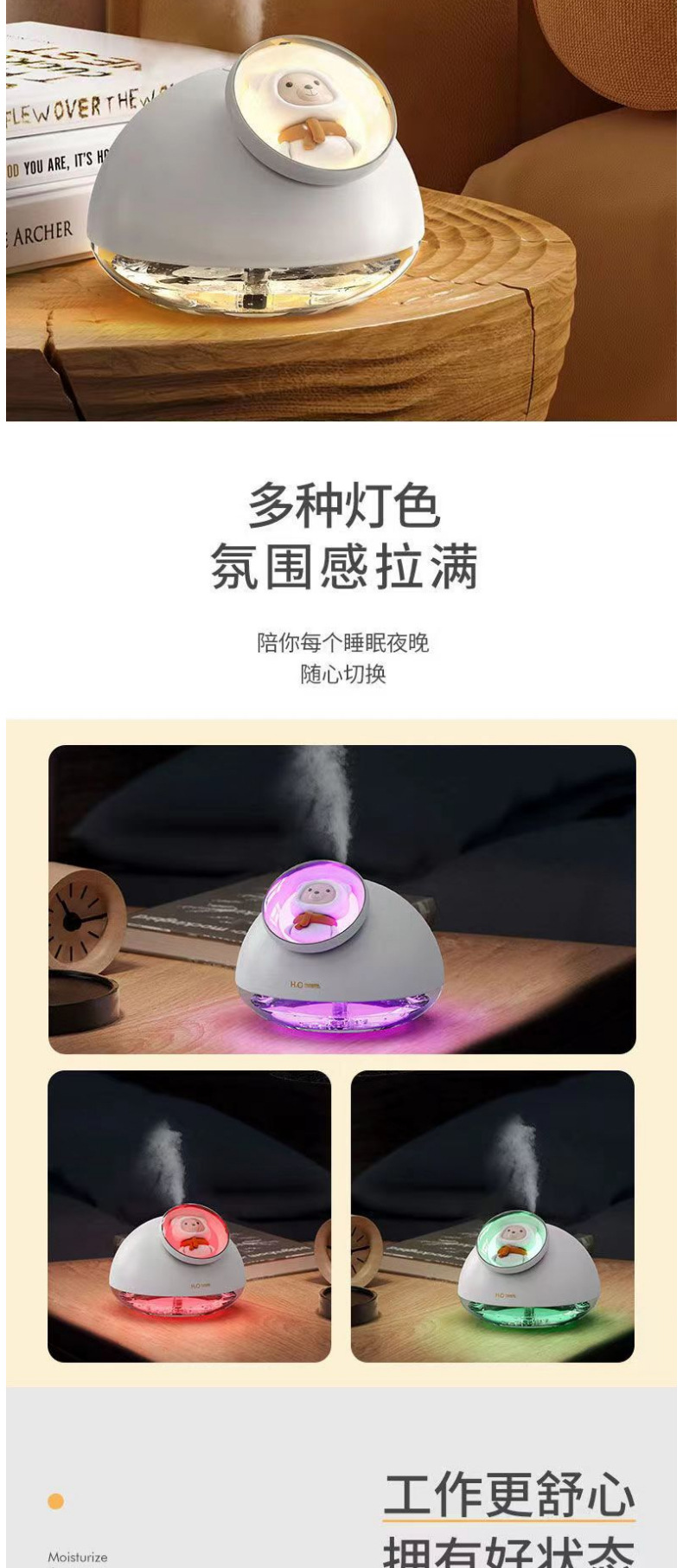 2023 New Seven-Color Ambience Light Cute Pet Usb Humidifier Household Office Desk Surface Panel Humidifier Small Wholesale