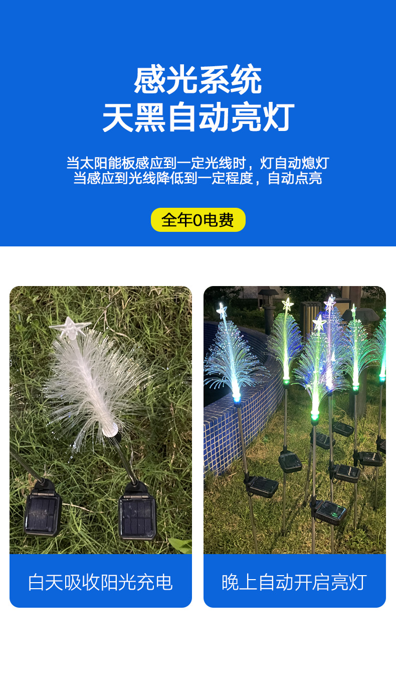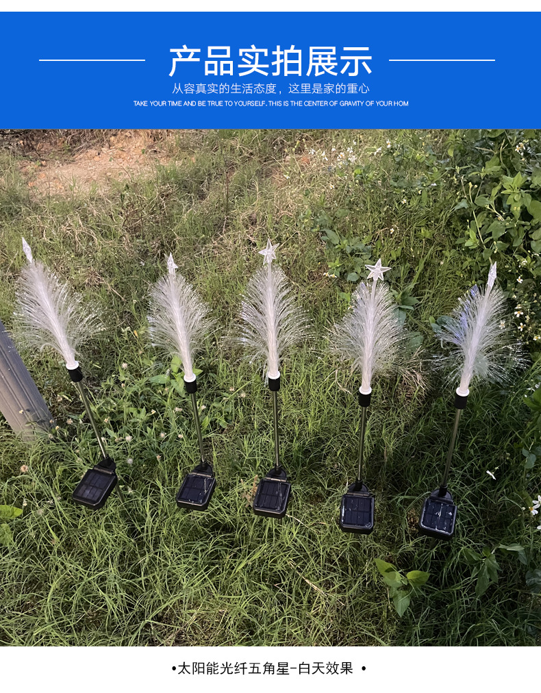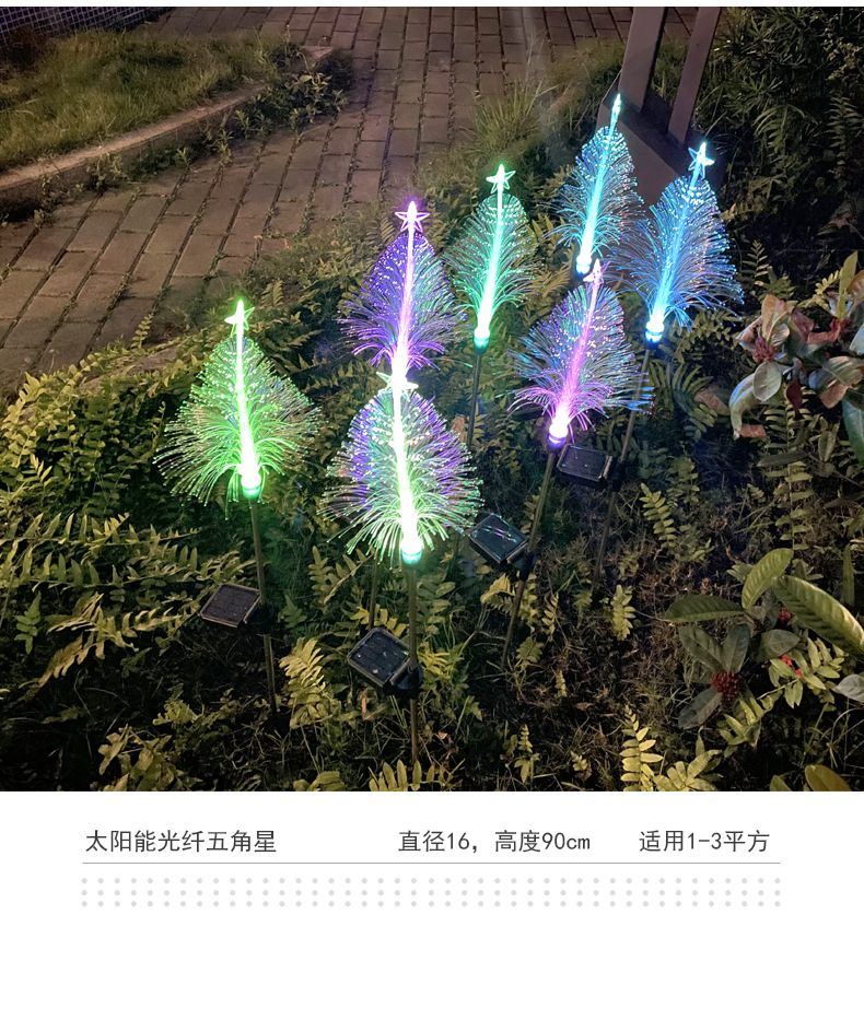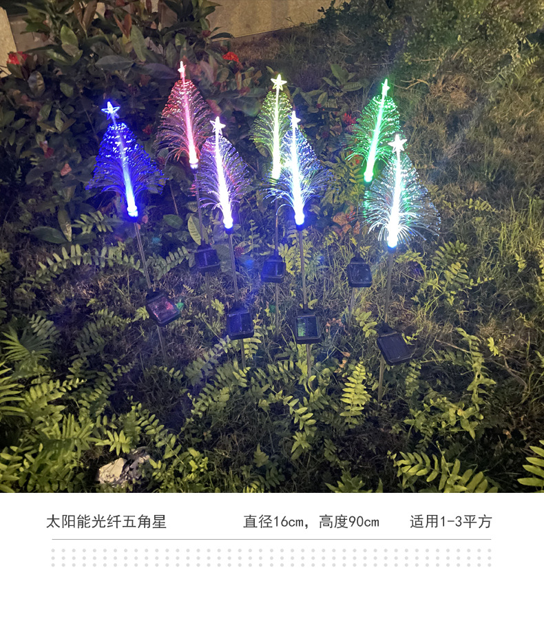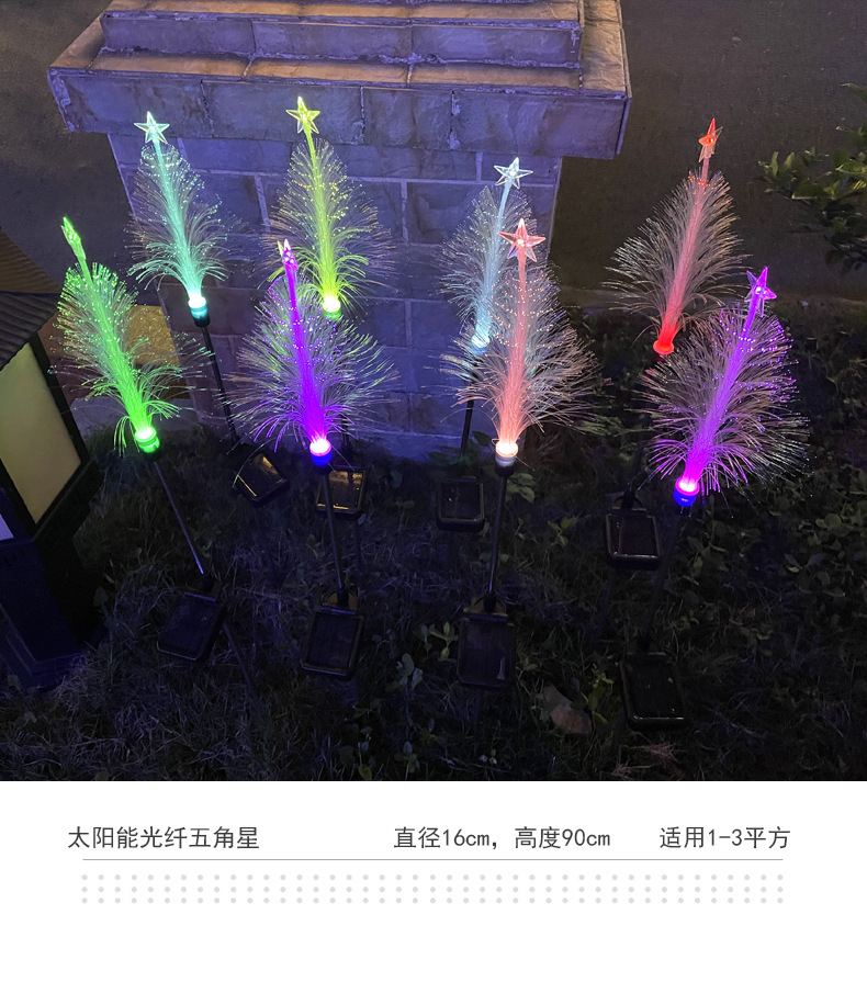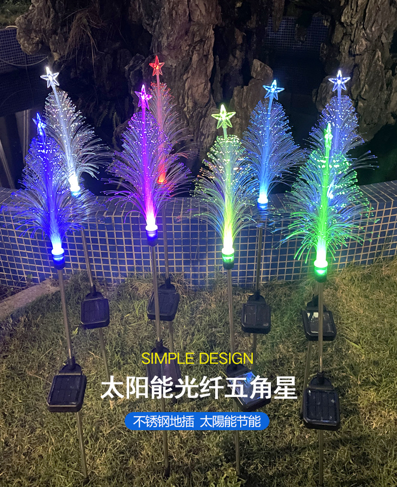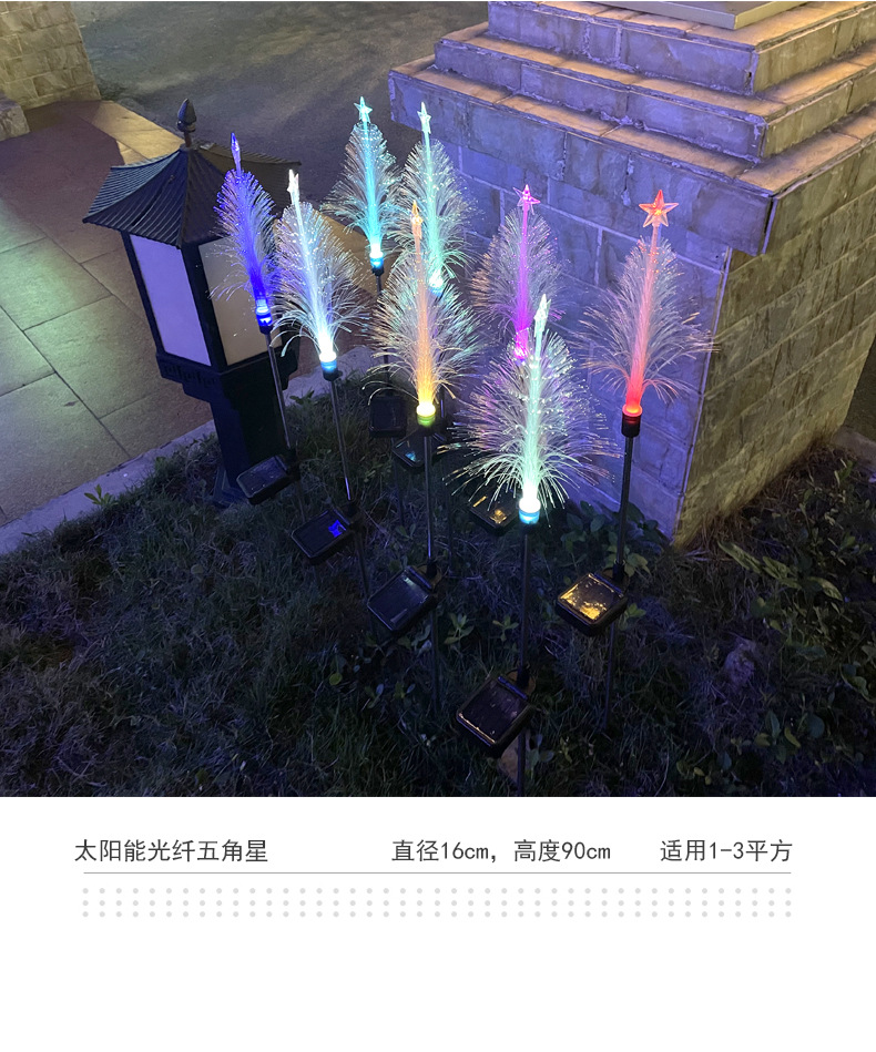 solar fiber-optic five-pointed star christmas lights outdoor courtyard atmosphere floor outlet christmas landscape lamp wholesale colored lights