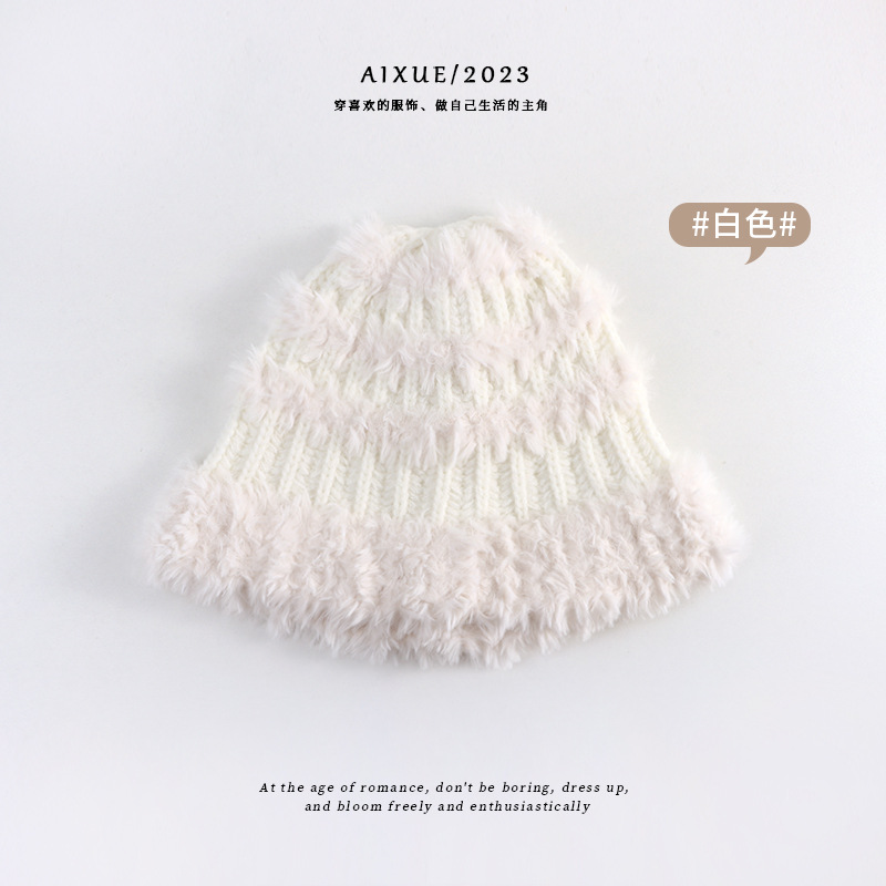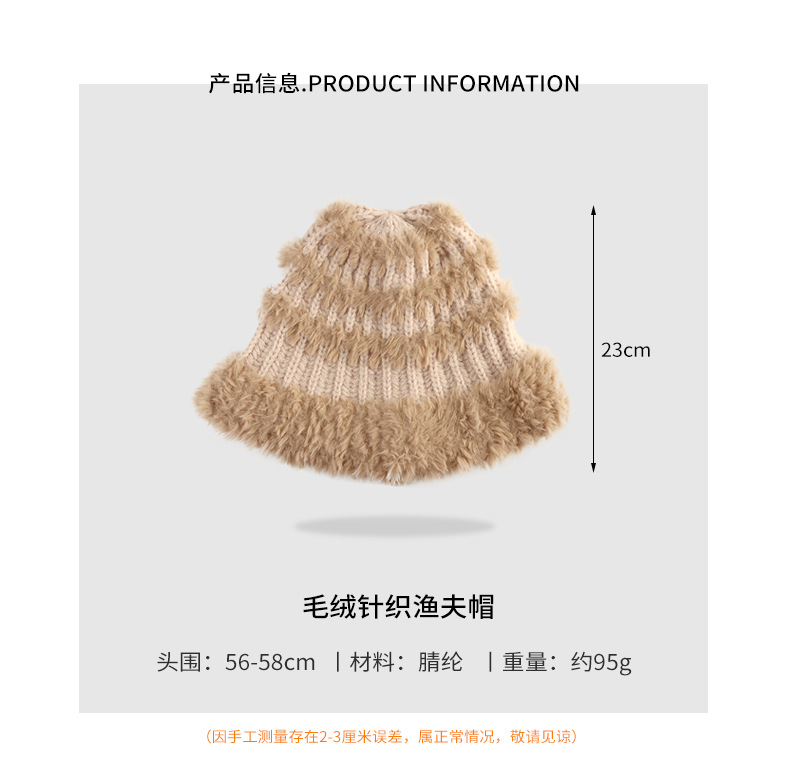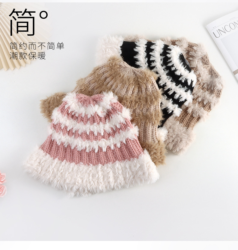 Japanese and Korean Style Stripe Bucket Hat Color Matching Dome Multicolor Thickened Warm Hat Hand Crocheting Plush Bonnet New Woolen Cap