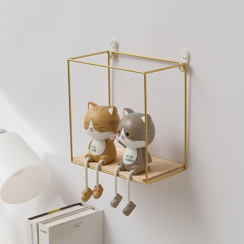 square single-layer storage rack medium-gold