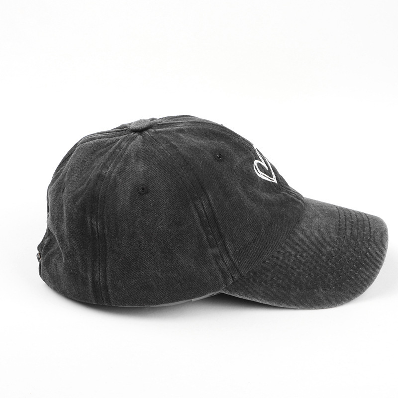 Men's Trendy All-Match Peach Heart Washed Distressed Embroidered Spring and Summer Baseball Cap Women's Korean-Style Thin Couple Soft Peaked Cap