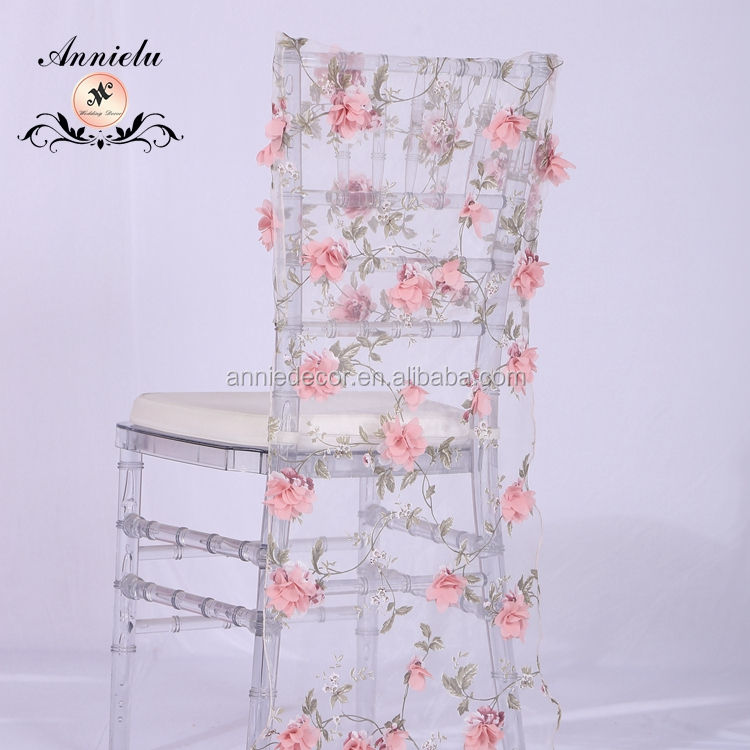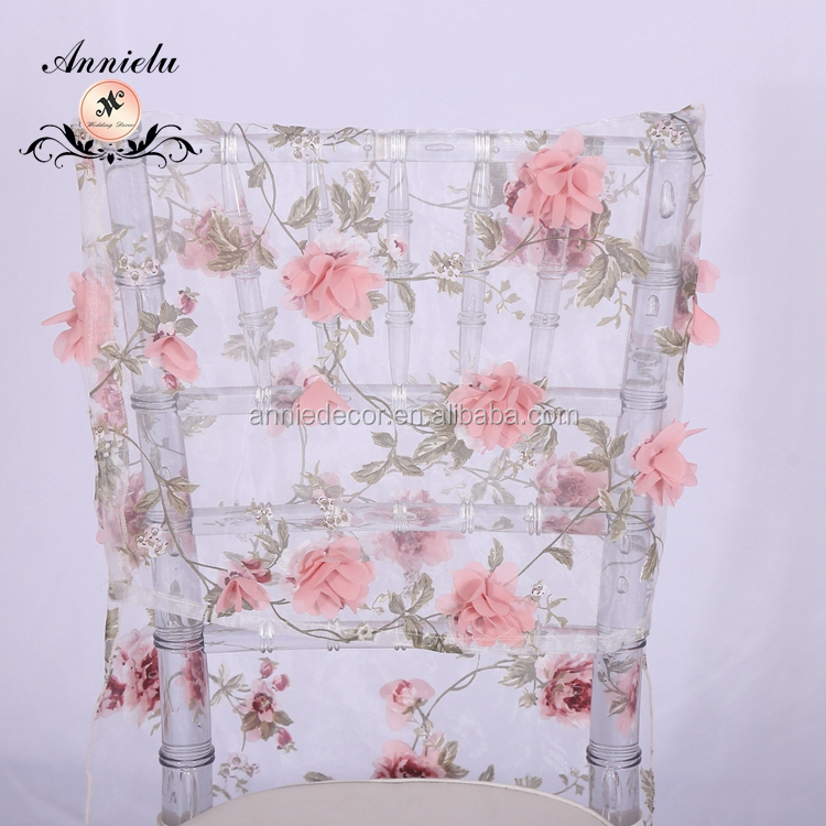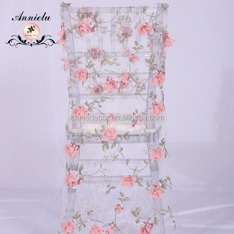 | Product Name | Fancy 3D flower embroidered shaped organza wedding chair cover |