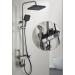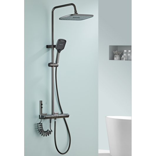 Gun Gray Alumimum Temperature Display Shower Head Set Matte Black Lift Rod Shower ABS Top Shower Hand Spray