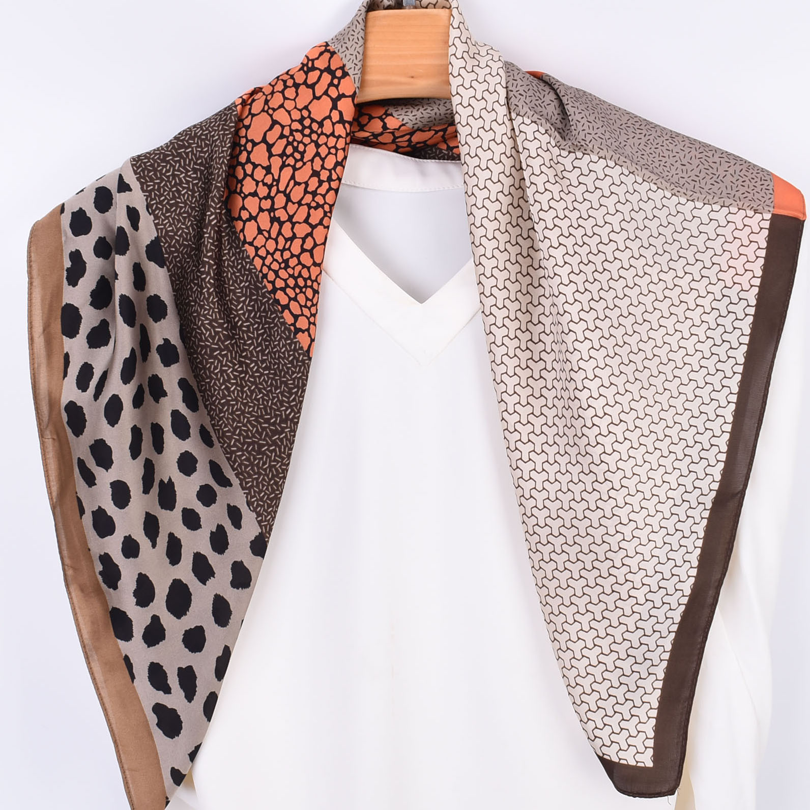 Cross-Border Supply Thousands of Threads Summer New Sunscreen Silk Scarf Triangle Leopard Print 70 Silk Scarf