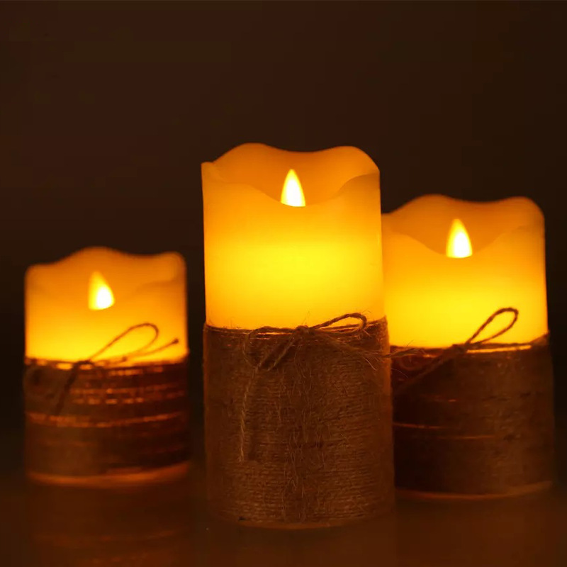 cross-border hot sale vintage handmade hemp rope winding swing simulation paraffin candle lead street lamp led electronic candle light 中文版