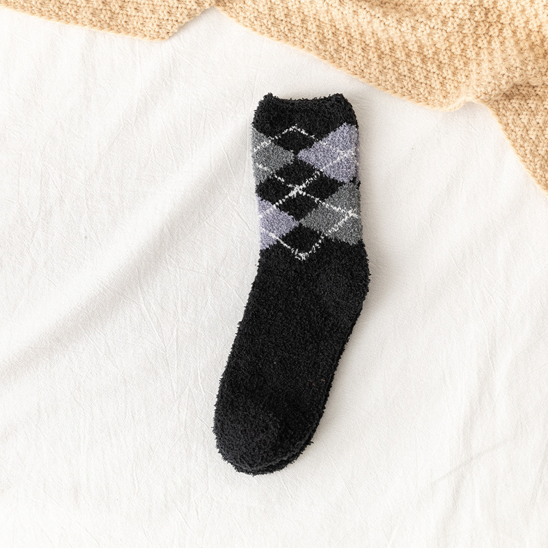 autumn and winter coral velvet socks men's large rhombus mid-calf socks home warm floor socks thickened sleep socks towel socks
