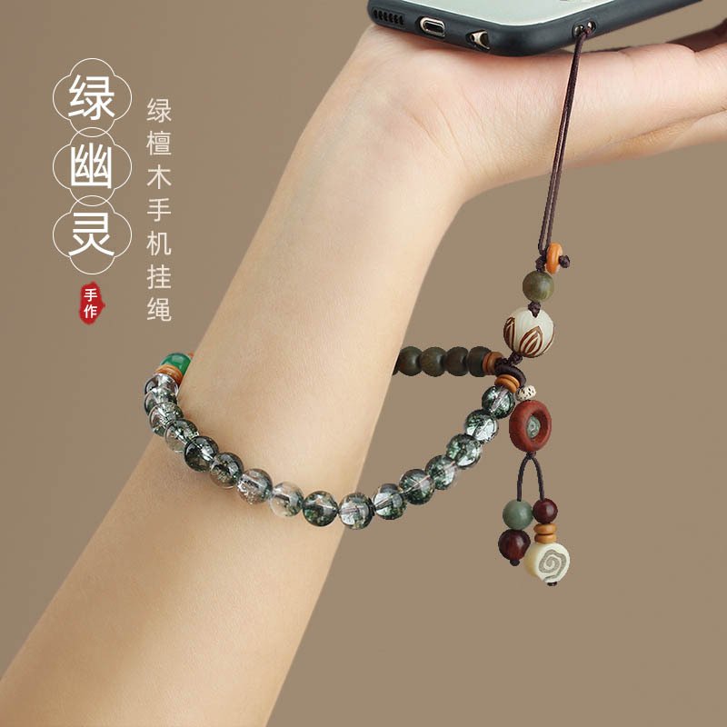 687-1# green phantom quartz crystal short mobile phone charm (simple)