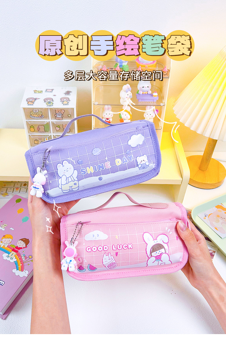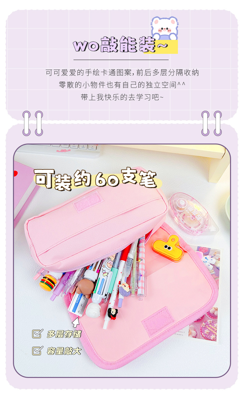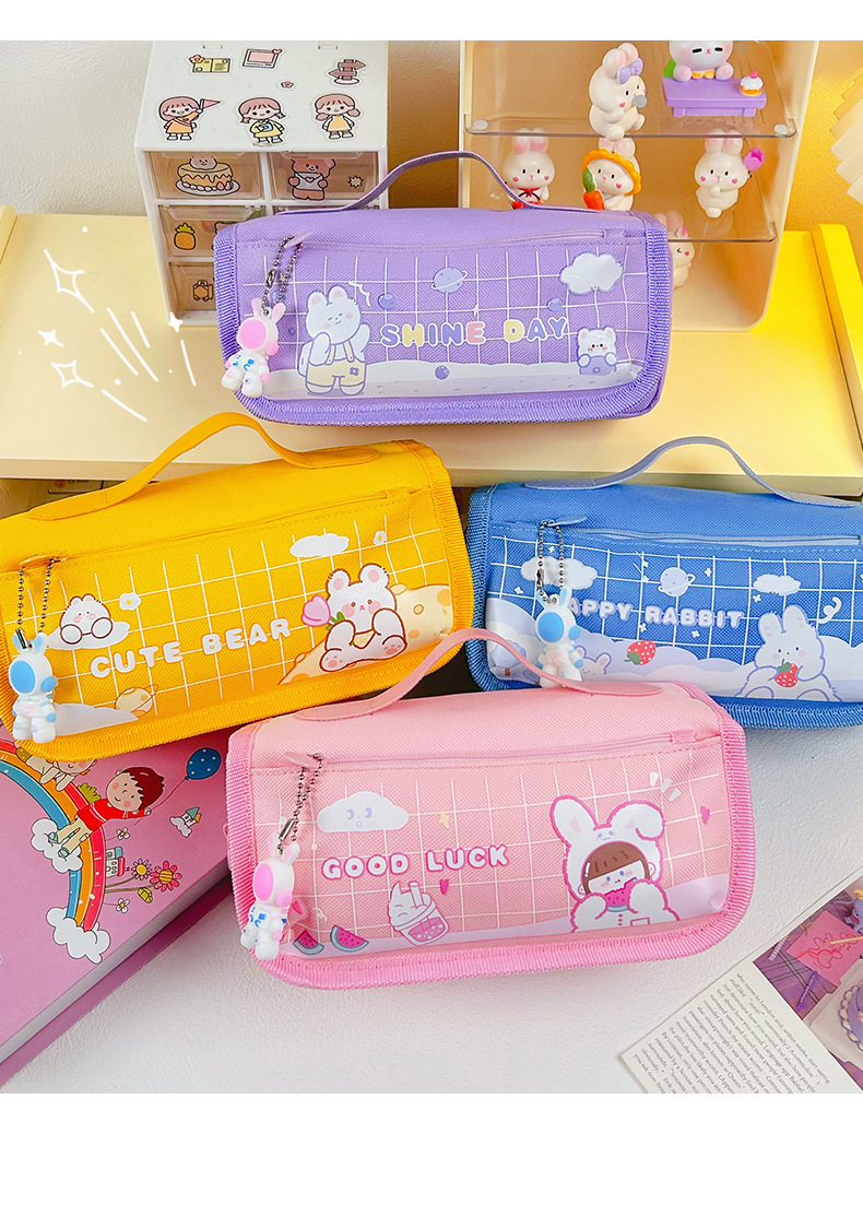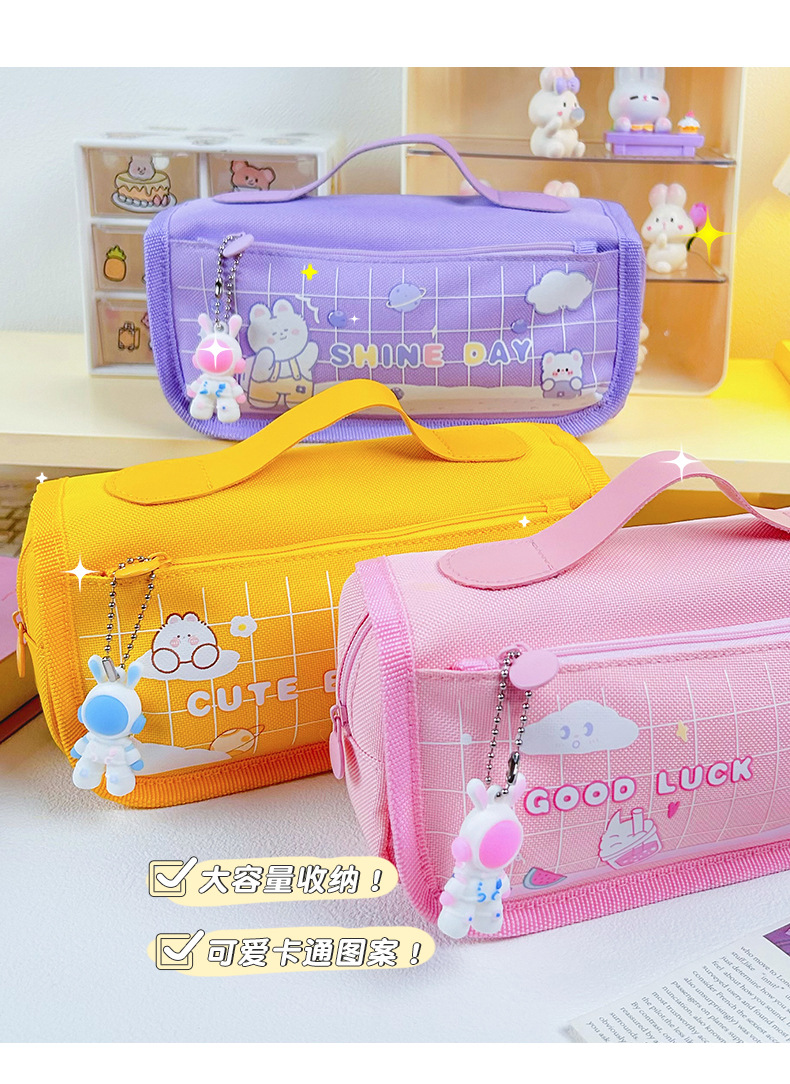 Large Capacity Stationery Bag Pencil Bag Pencil Box Stationery Box Cartoon Pencil Case Portable Stationery Bag 中文版