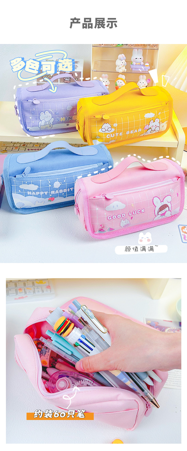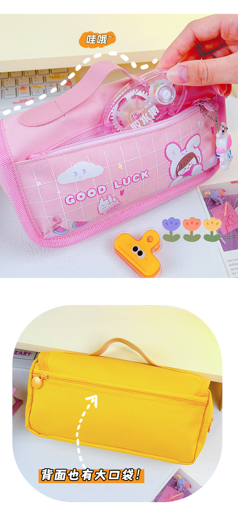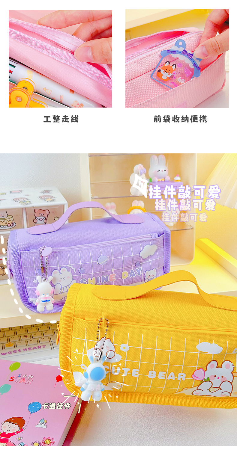 Large Capacity Stationery Bag Pencil Bag Pencil Box Stationery Box Cartoon Pencil Case Portable Stationery Bag 中文版