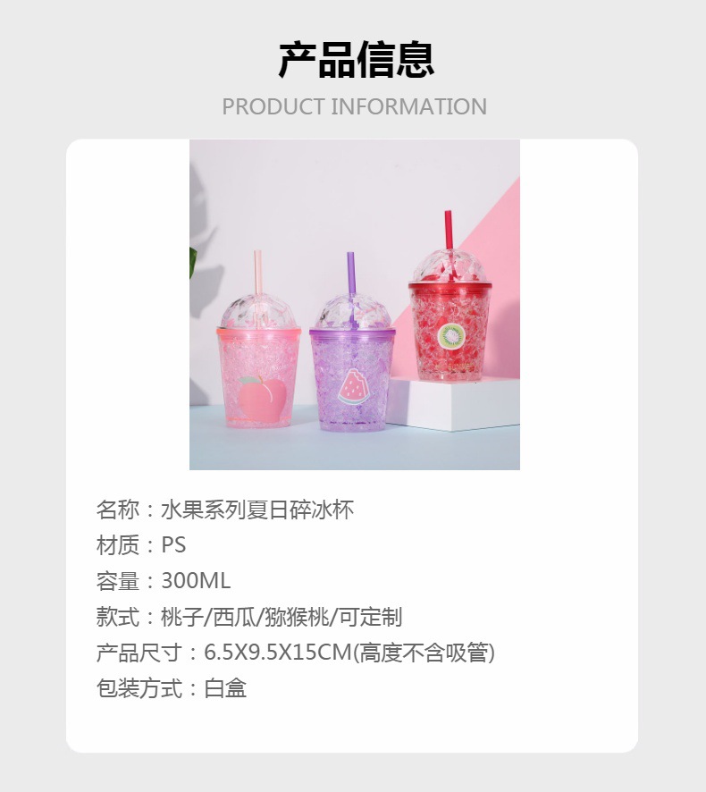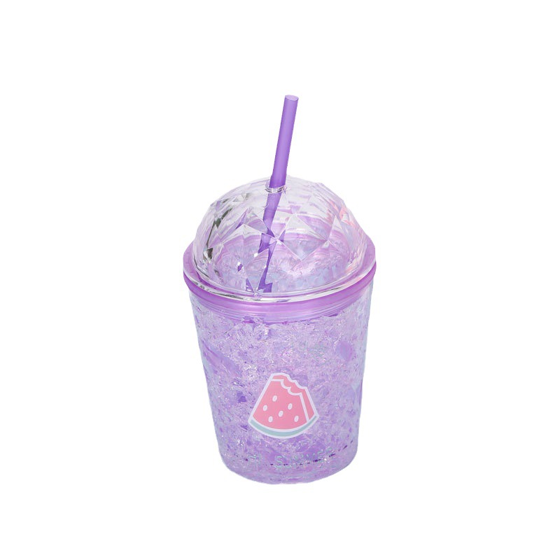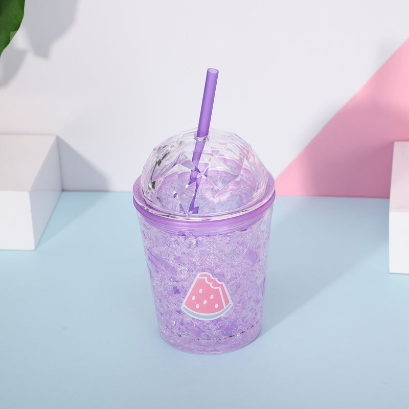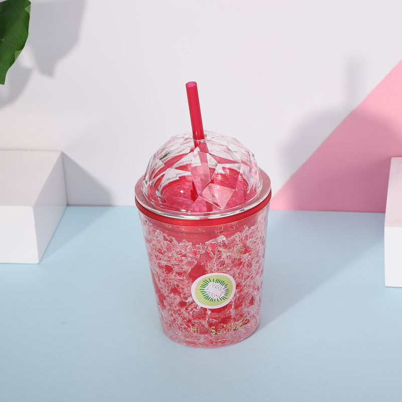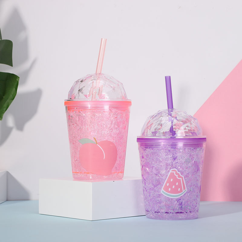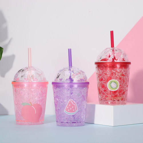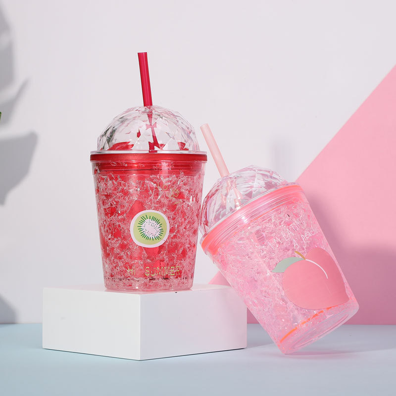factory direct selling fashion fruit series summer ice cup plastic straw water cup double gel ice cup