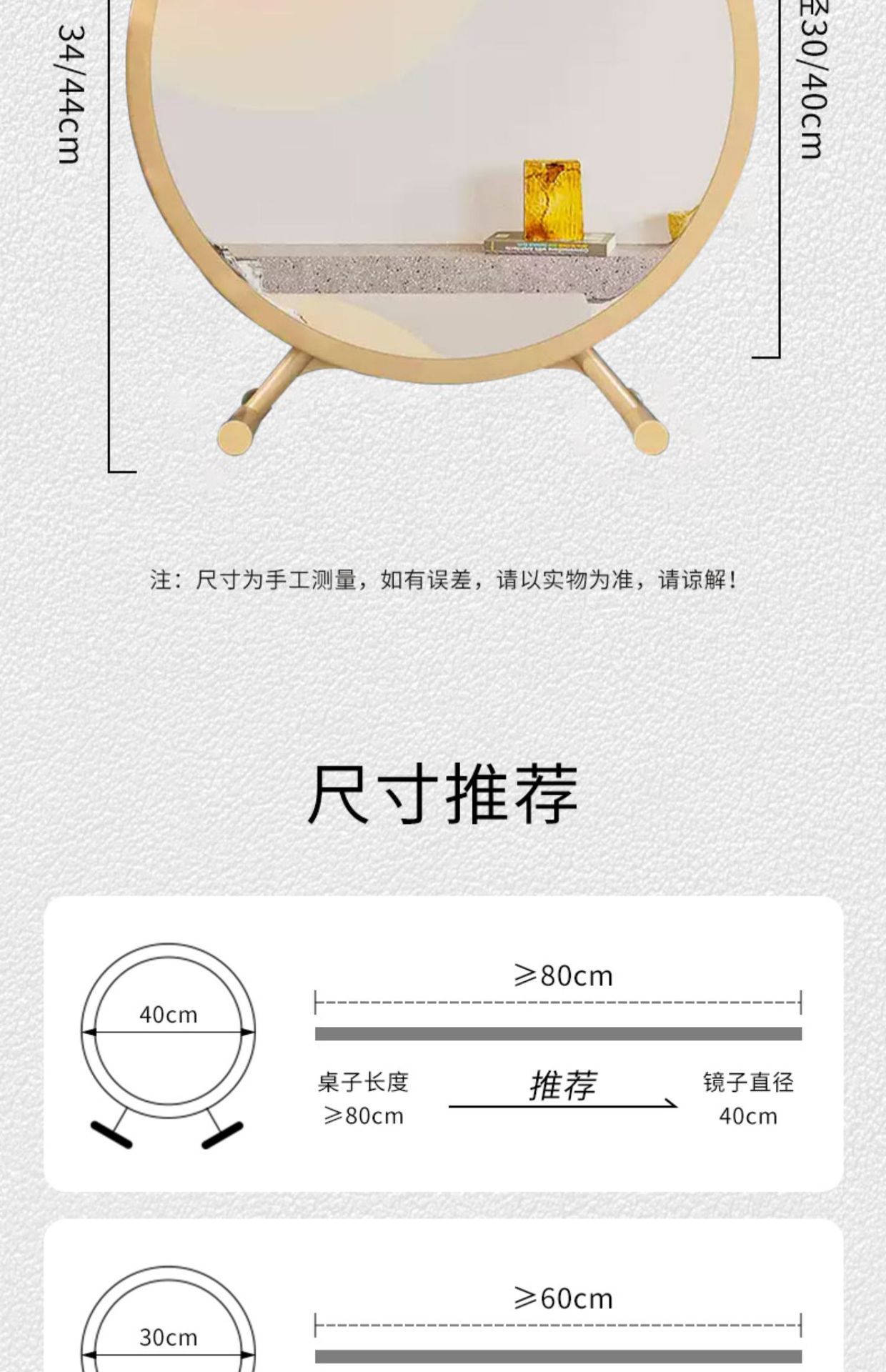 golden 40cm no light * [adjustable angle hd silver mirror explosion-proof]]