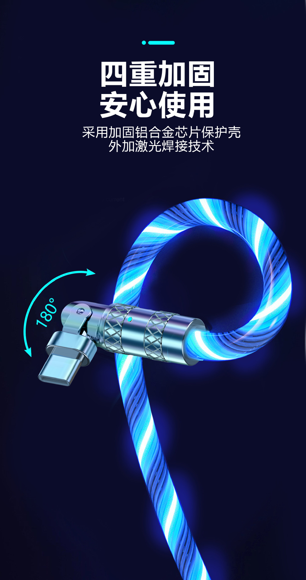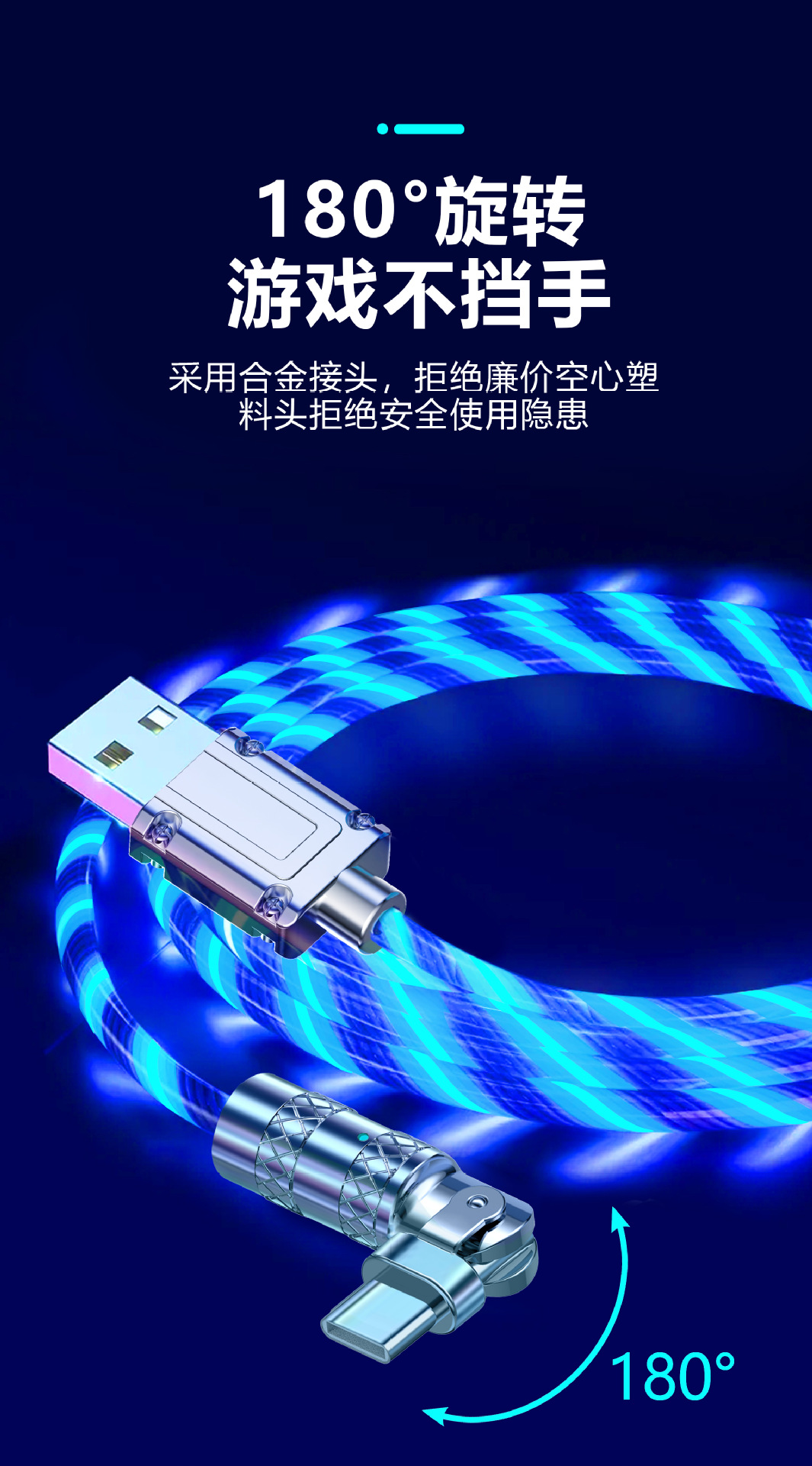 Streamer 180 Degrees Case Data Cable Colorful Streamer Data Cable Applicable to Apple Typec Android Mobile Phone Charging Cable 中文版