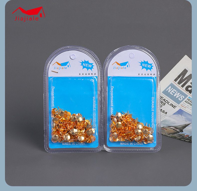 New Clamshell Packaging Metal Circle Pushpin Office Nail Flat Head Nail Double Bubble Shell Gold Plated Nickel Plated Hardware Set