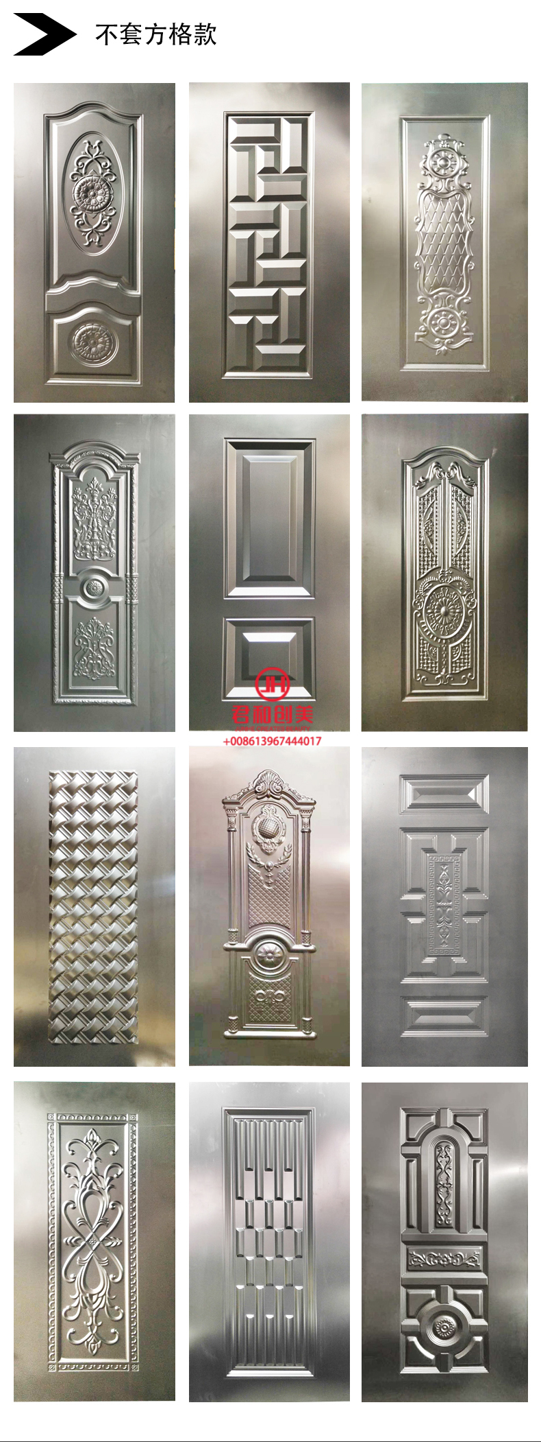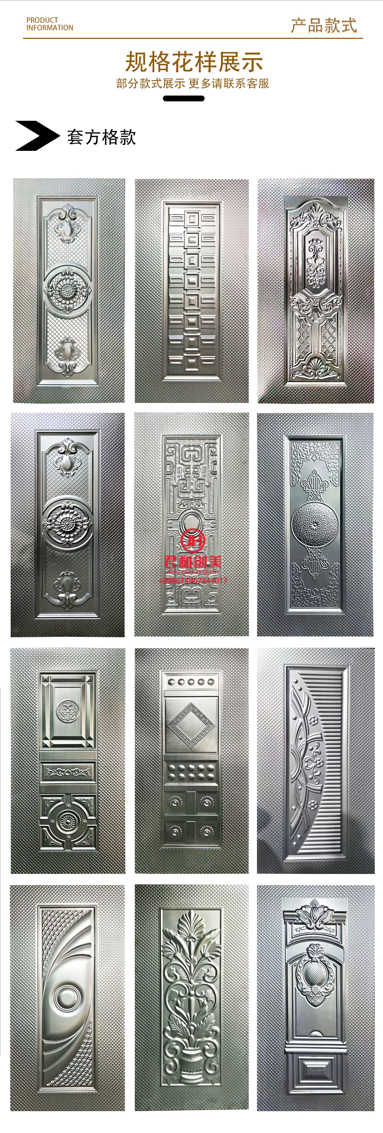 We are a professional enterprise specializing in the processing and sales of security door faceplates and the sales of security door accessories. We have been a long-term supplier for many well-known security door manufacturers in the country. We have 15 large-scale security door faceplate press machines, which can provide high-quality and high-capacity faceplate processing services for various customers. Our equipment is fully equipped, with direct and horizontal exit methods, which can process various specifications of security door faceplates within 1.25*2.5 meters, including standard and non-standard security door faceplates, indoor steel wood faceplates, plasticized boards, stainless steel plates, cold-rolled steel plates, etc. The newly introduced precision engraving faceplates, leopard skin faceplates, wood grain faceplates, and rolled flower faceplates give the faceplates a real texture, enhancing the level of the door, and can be customized according to customer requirements for personalized wood grain or other patterns. The variety of faceplate patterns and patterns is rich, innovative and exquisite, with strong three-dimensional feeling and smooth molding, which can meet the needs of various business development of customers. We are a factory and company with integrated trade and industry, with rich experience in foreign trade export cabinets, quality assurance, and favorable prices. The factory price is updated at any time, and the details of the board price on the day should be inquired in time by your esteemed customers! Contact telephone: 13967444017 Contact person: Manager Zhang