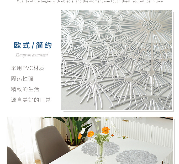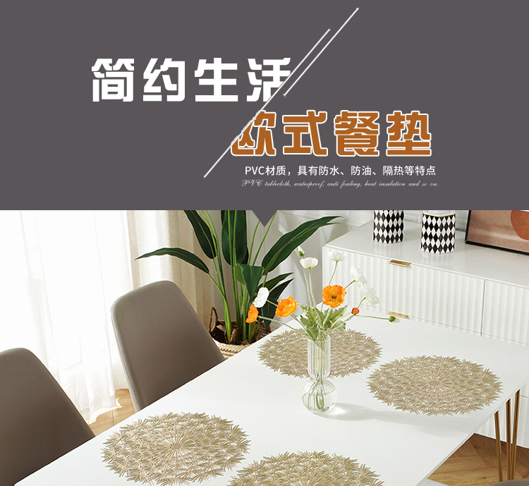 factory direct supply creative style dandelion gilding placemat pvc heat proof mat western-style placemat dining table cushion teacup mat