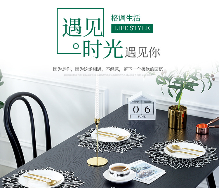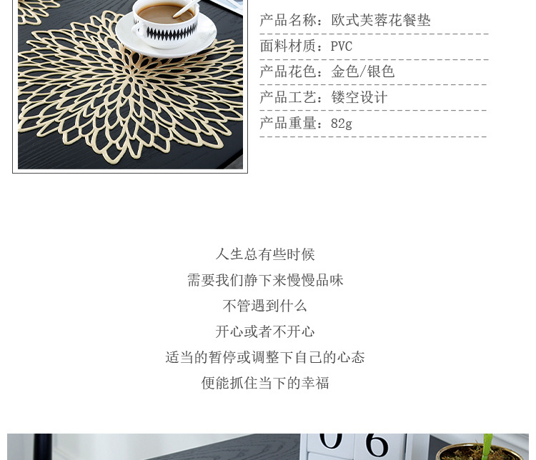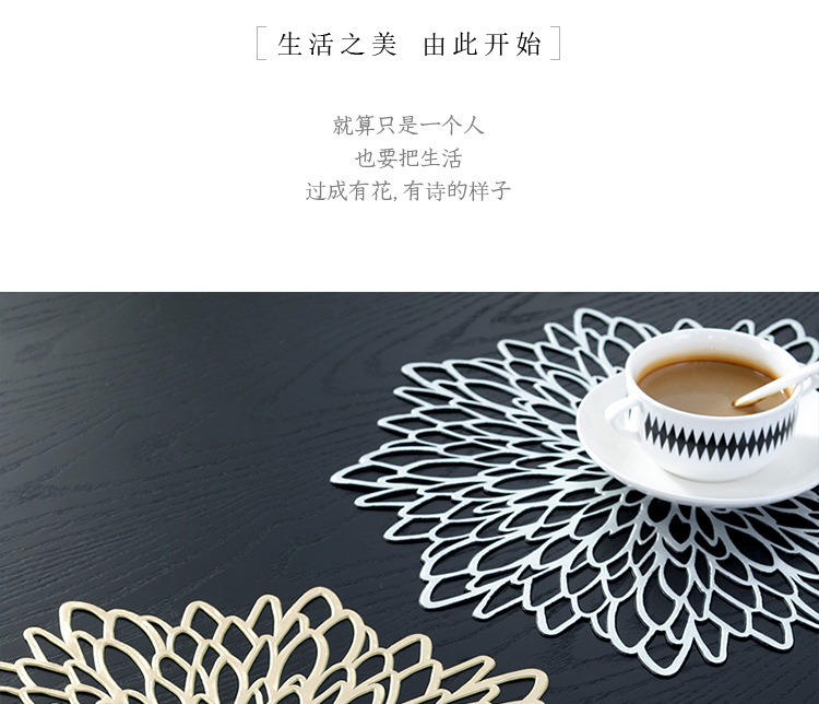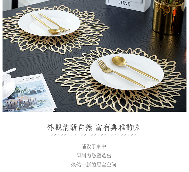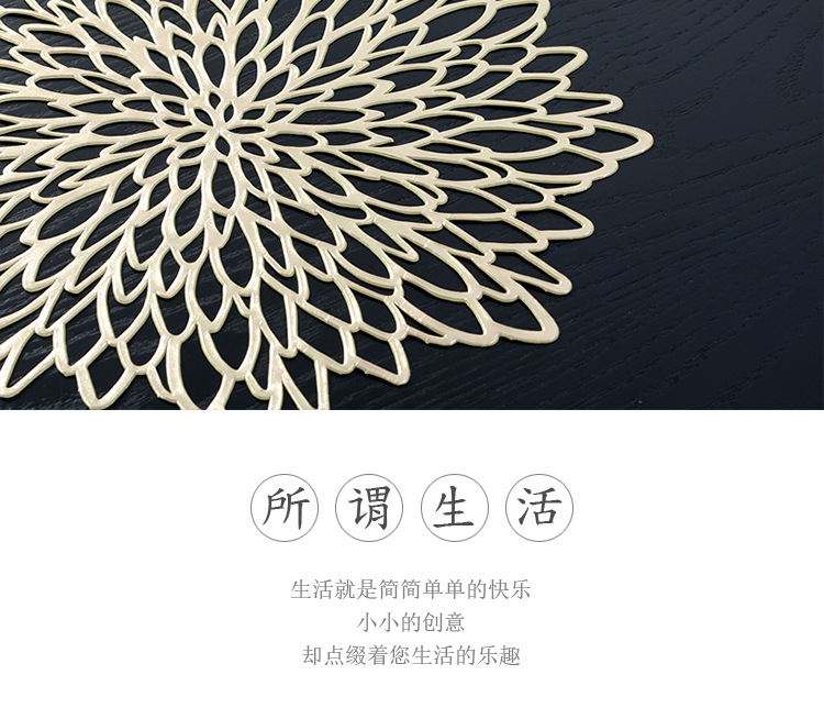 european placemat pvc creative high temperature resistant oil-proof waterproof gilding hollow heat proof mat hibiscus flower cross-border supply