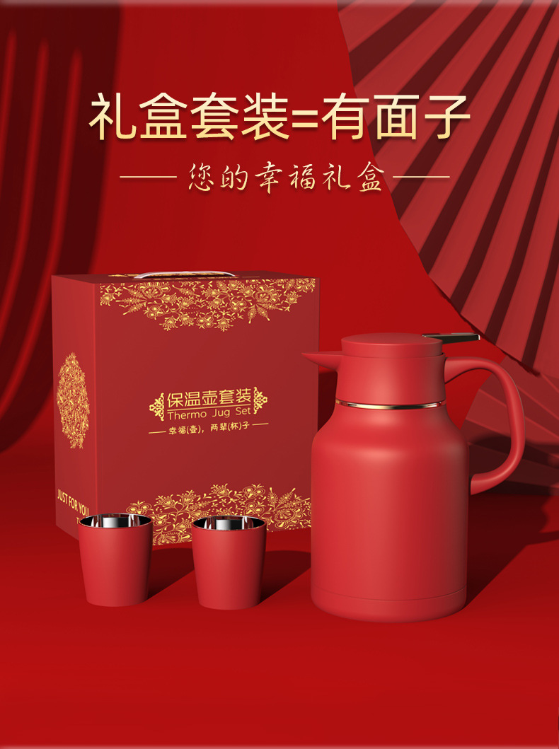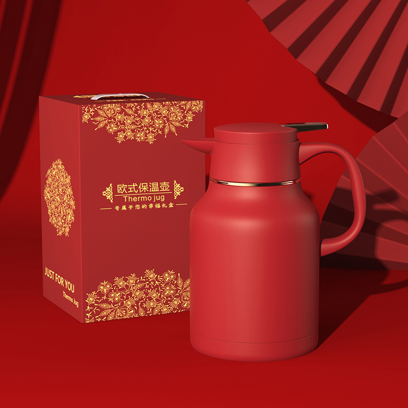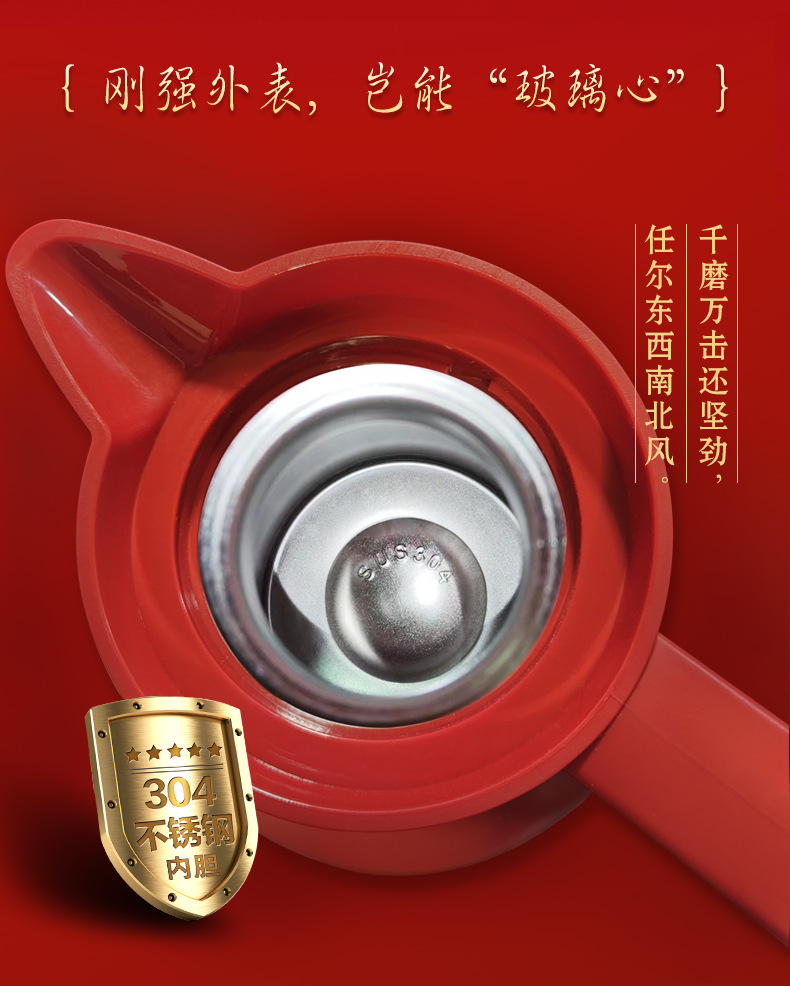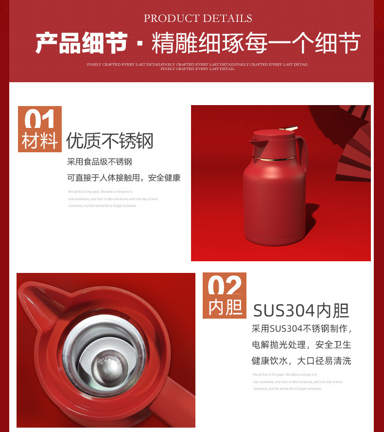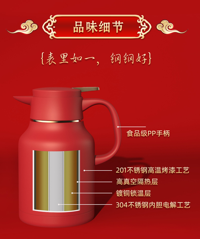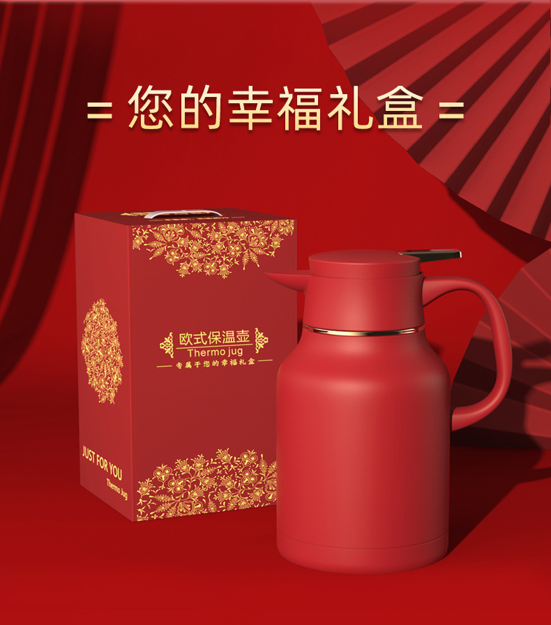 factory goods 304 stainless steel thermal pot wedding festive thermal kettle red dowry household large capacity open hot water bottle 中文版