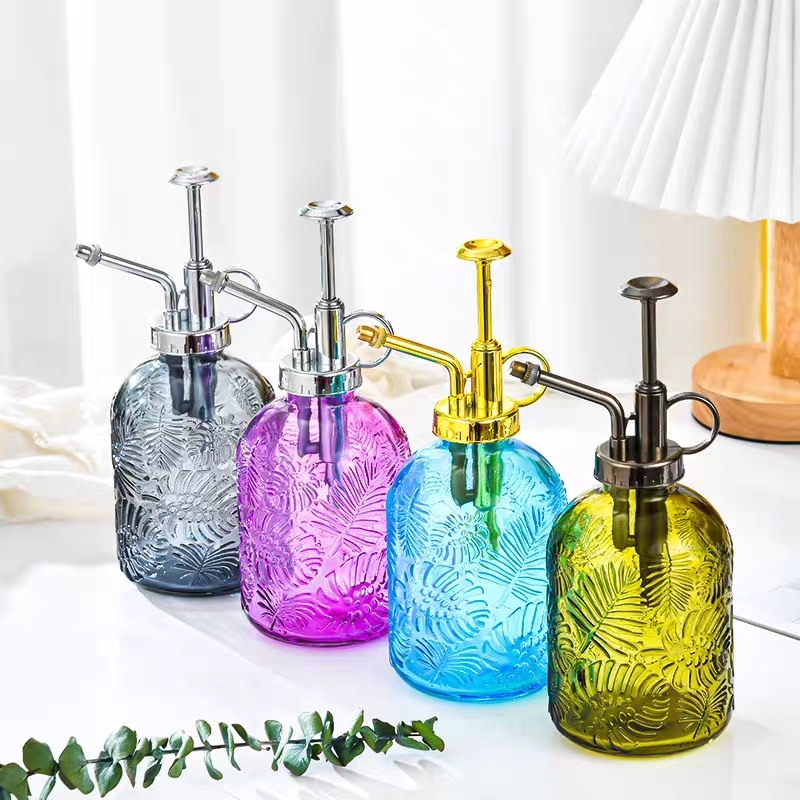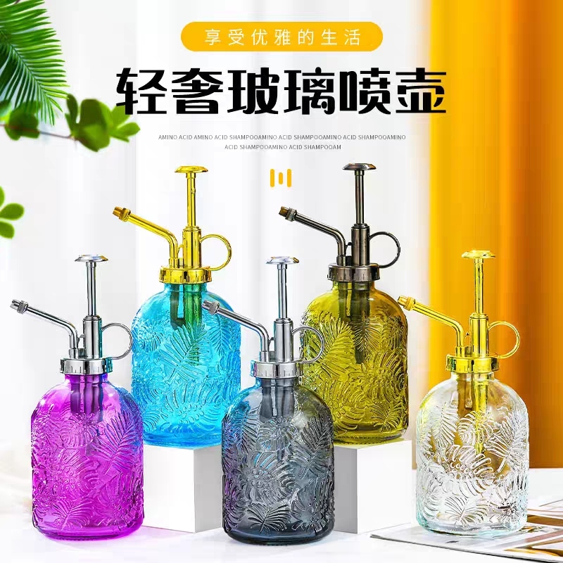 new creative maple leaf hand pressure high sprinkling can glass watering sprayer stained glass sprinkler 中文版