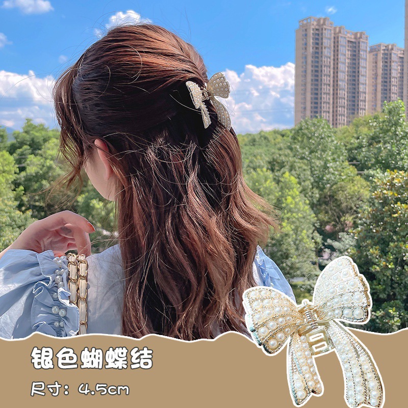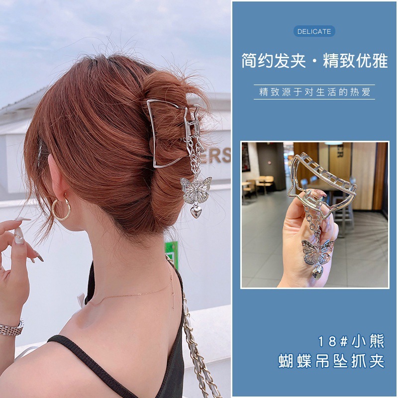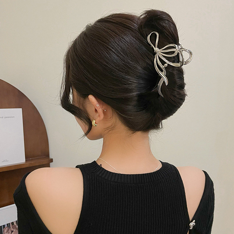 15# hair claw. big silver ring cold gray butterfly
