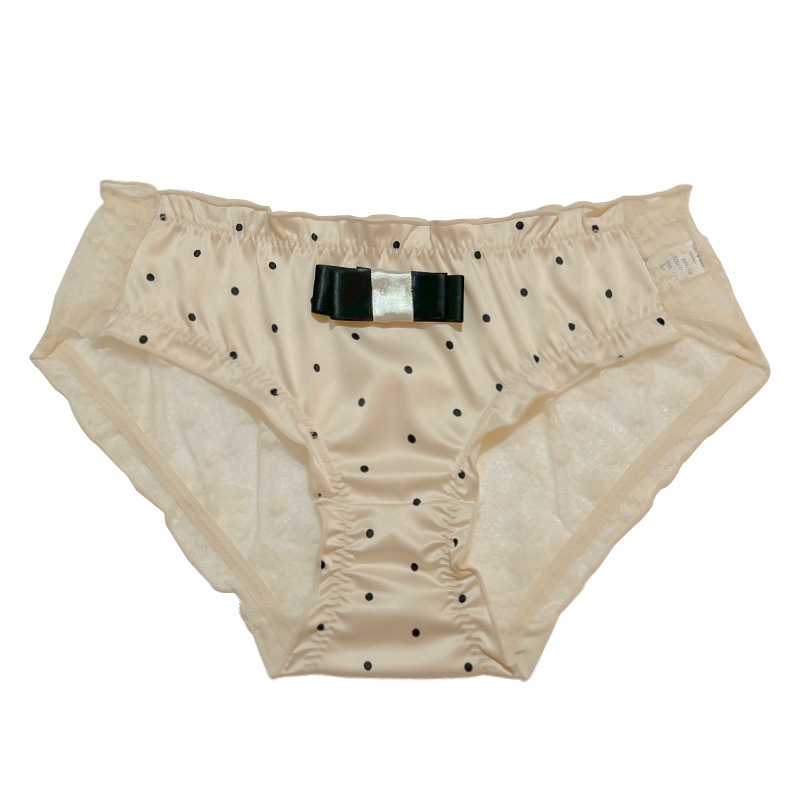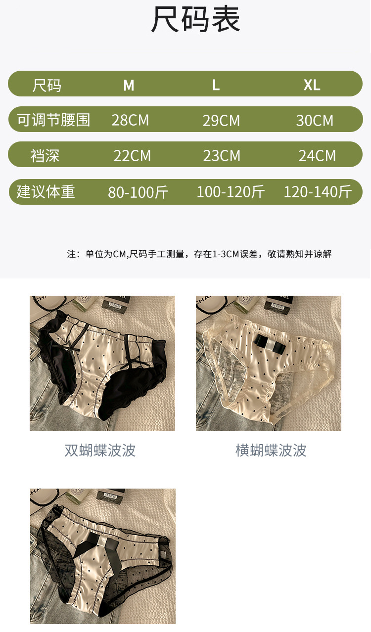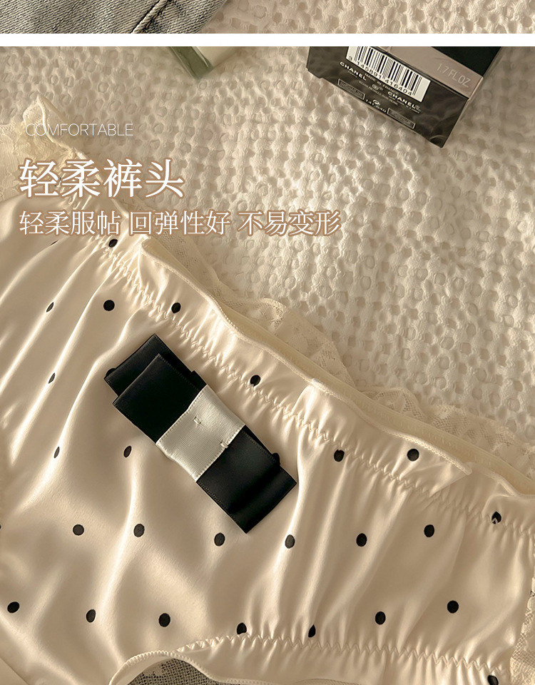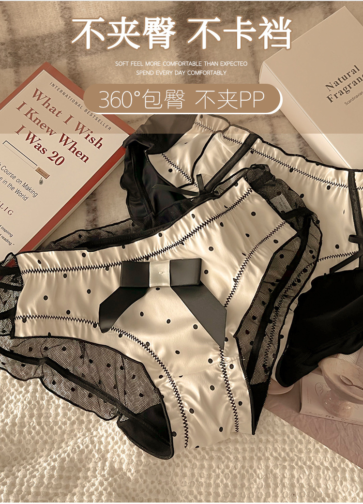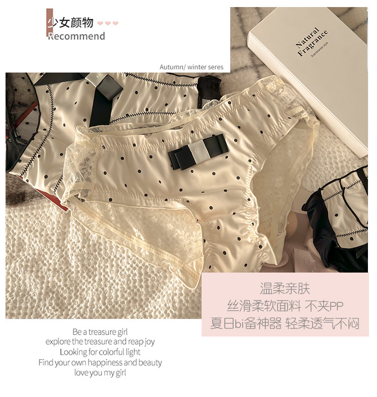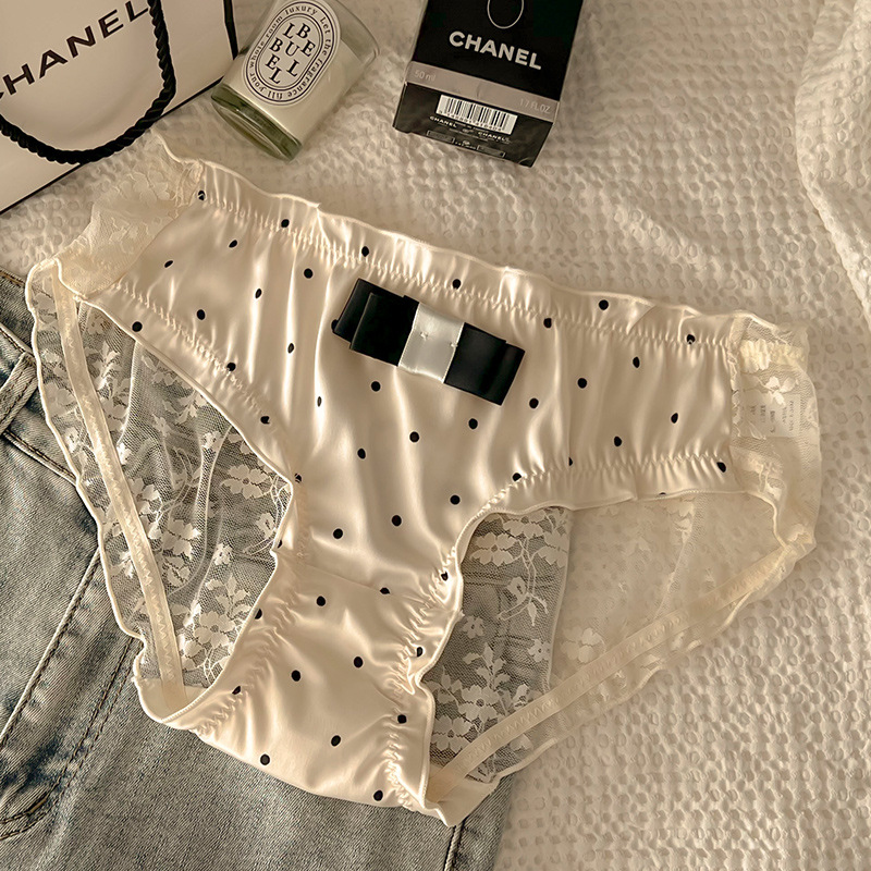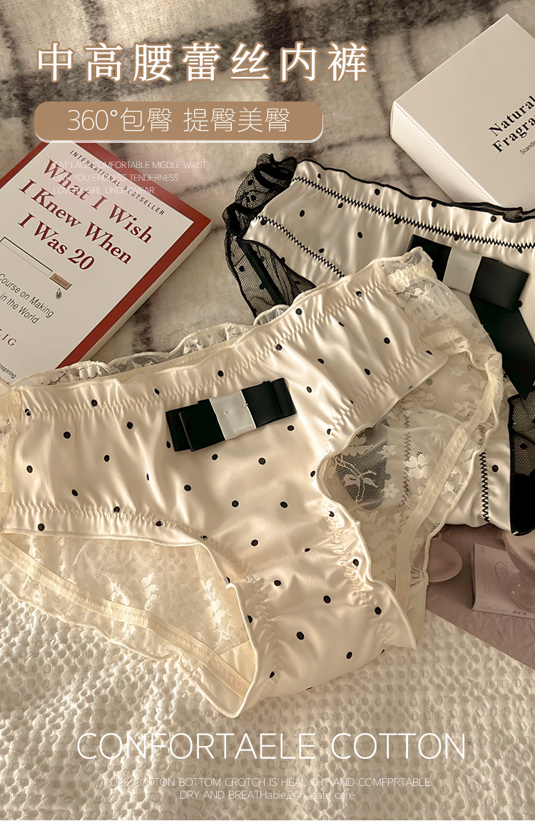 Women's Underwear Pure Lace Bow Women's Cotton Crotch Mid-Bottom Waist Sexy Hot French Briefs 中文版