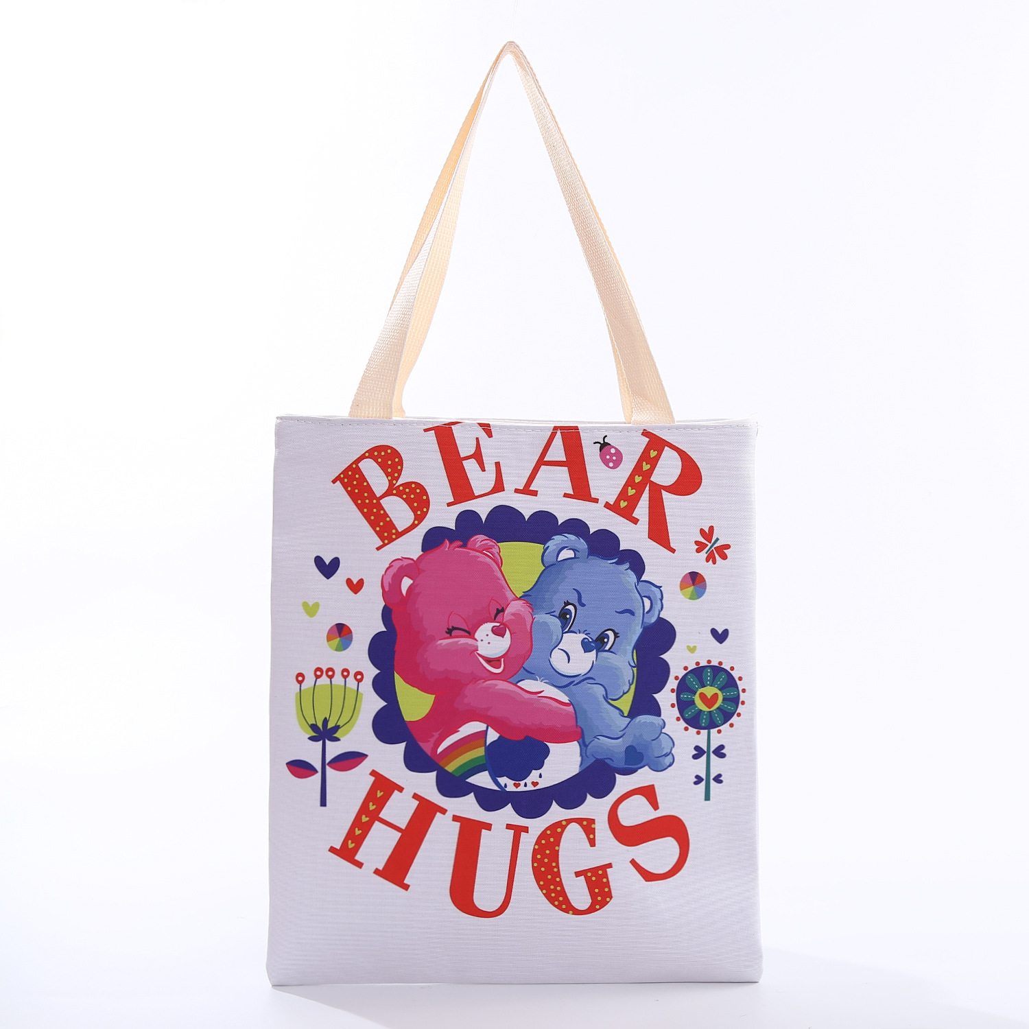 2023 new canvas bag women's large capacity totes bear letter printing shopping bag portable shoulder bag fashion 中文版
