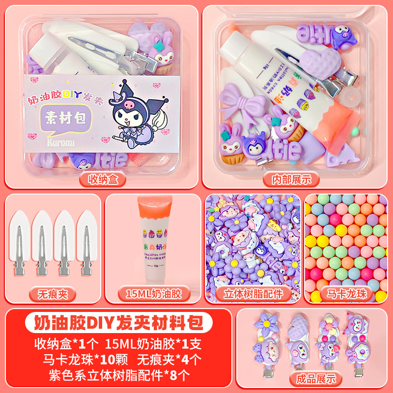 purple series-cream glue diy barrettes [material package]]