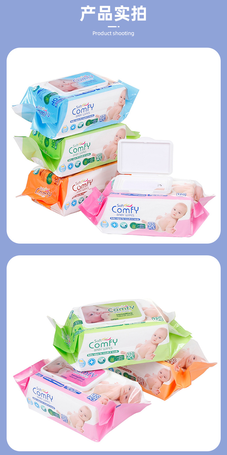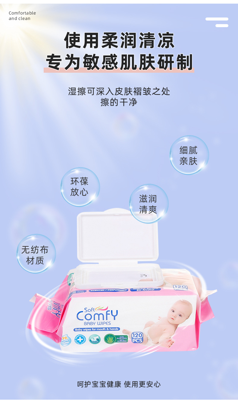 moisturizing baby hand and mouth wipes 120 pieces family pack comfortable soft wet tissue baby wipe skin-friendly wipe 中文版