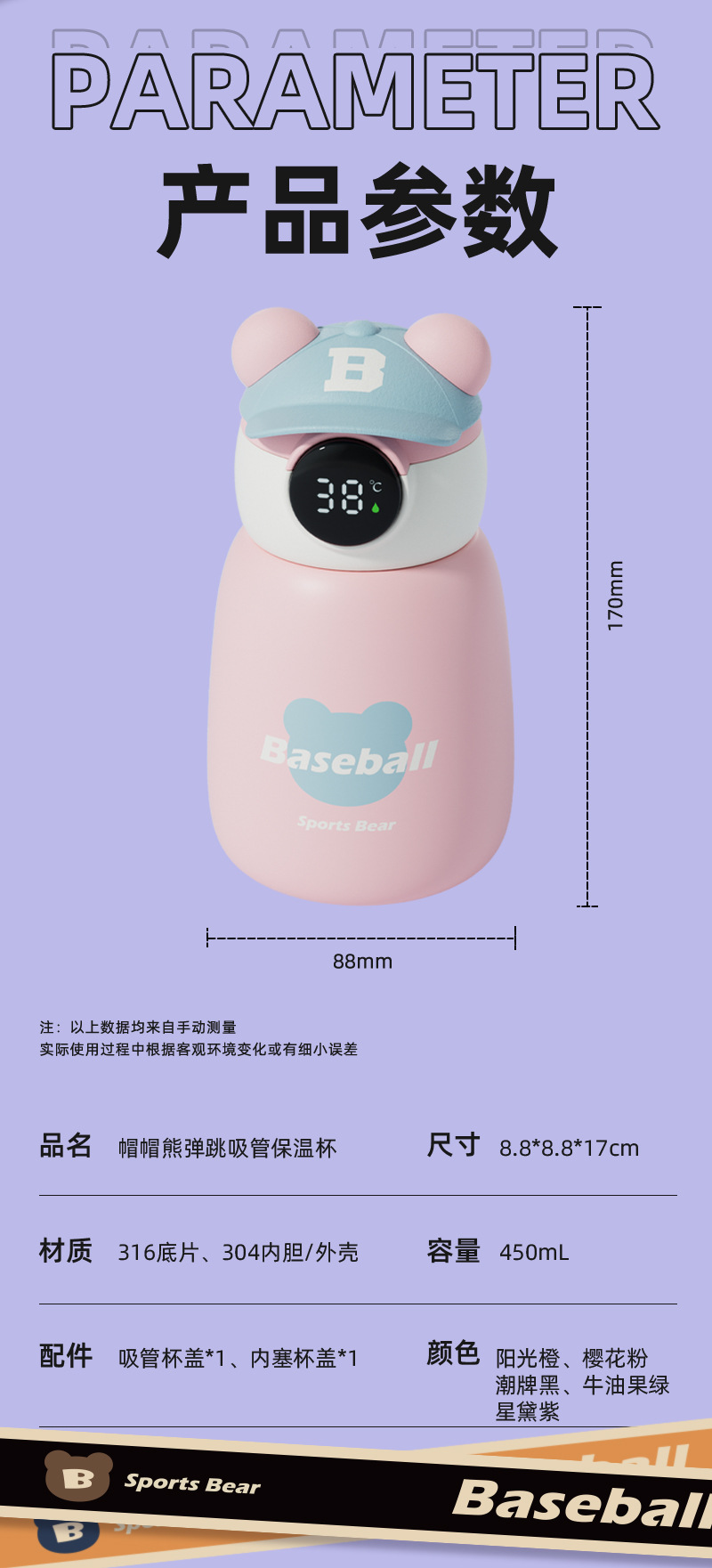 Good-looking Cute Portable Children's Warm Cap Hat Bear Bounce Cover Straw Thermal Insulation Cup 316 Stainless Steel Bounce Cover 中文版