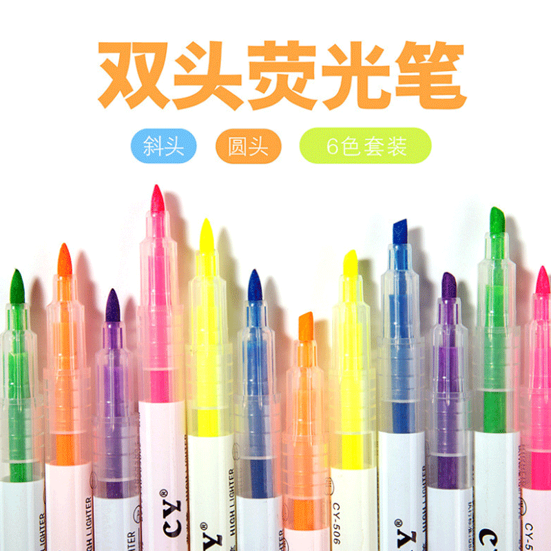 fluorescent pen-6 pieces multicolor pack * double head