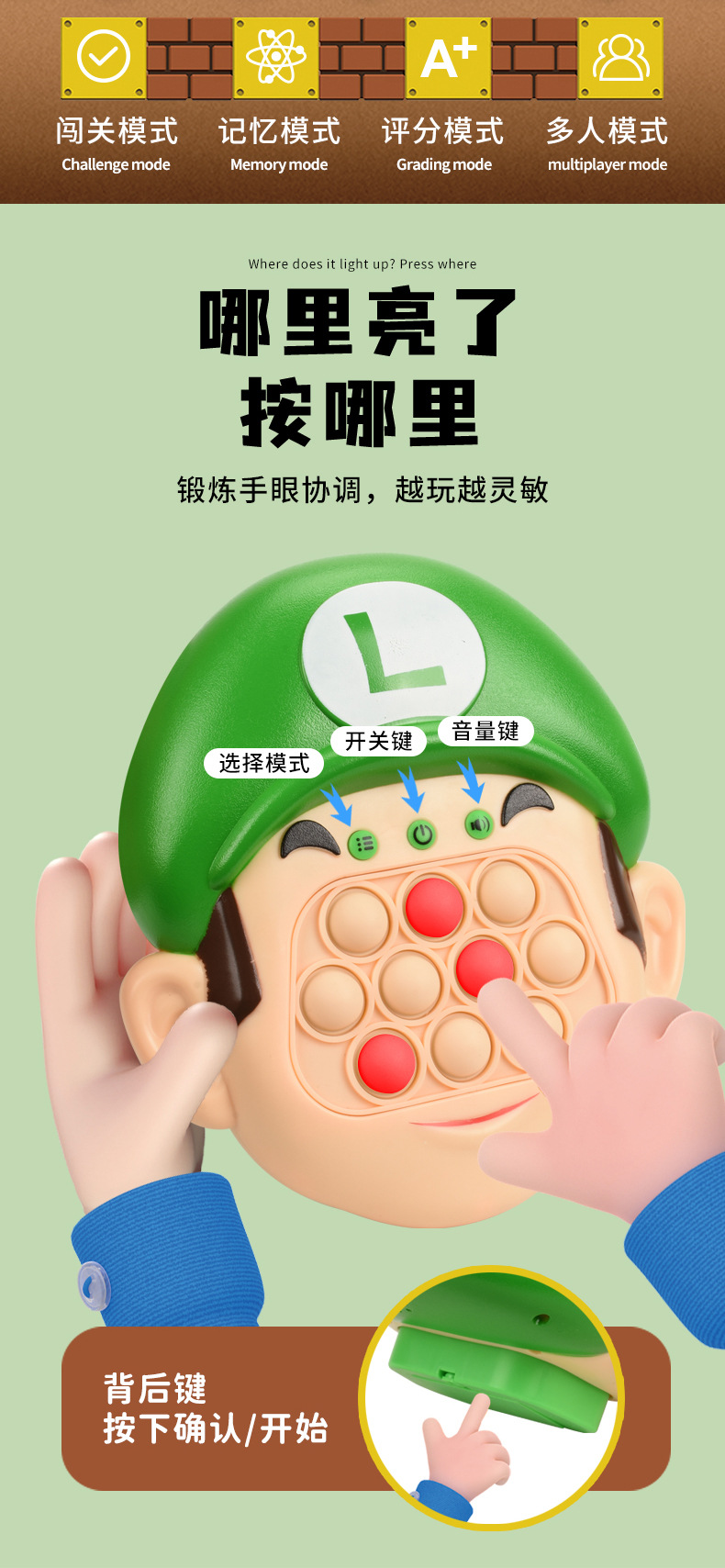 mario mouse killer pioneer press music mario whac-a-mole puzzle entrance speed push game machine decompression toy 中文版