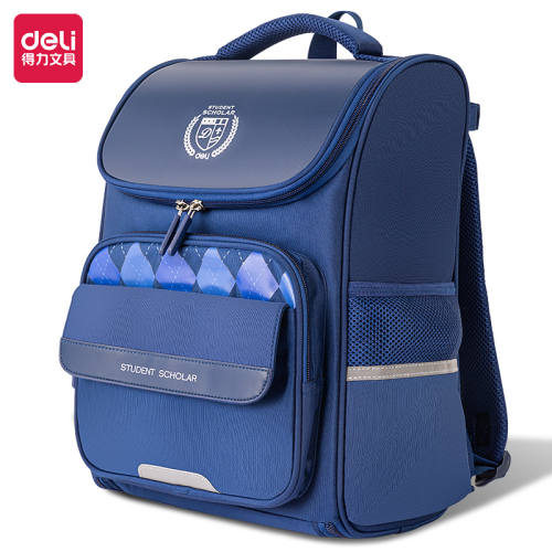 Deli Bb126 Classic College Series Plaid Stitching Large Capacity Layered Storage Schoolbag (Blue/Red) (Pieces) 中文版