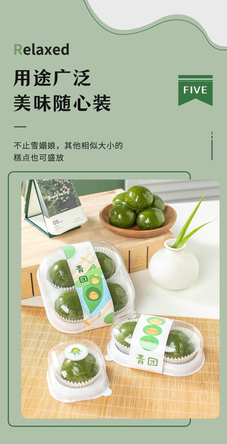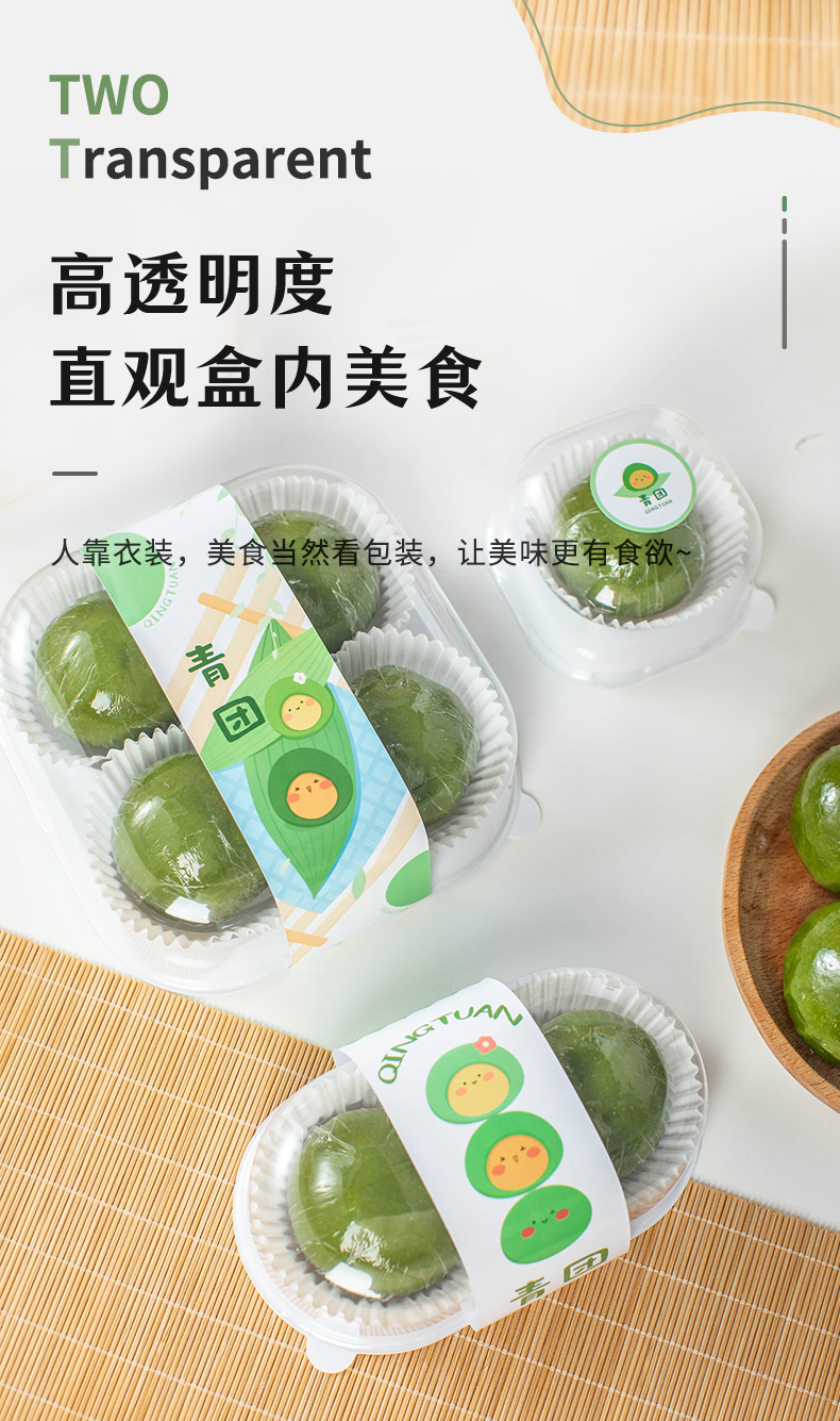 green packing box qingming festival gift box single transparent sealing blister daifuku dessert bento take out box 中文版