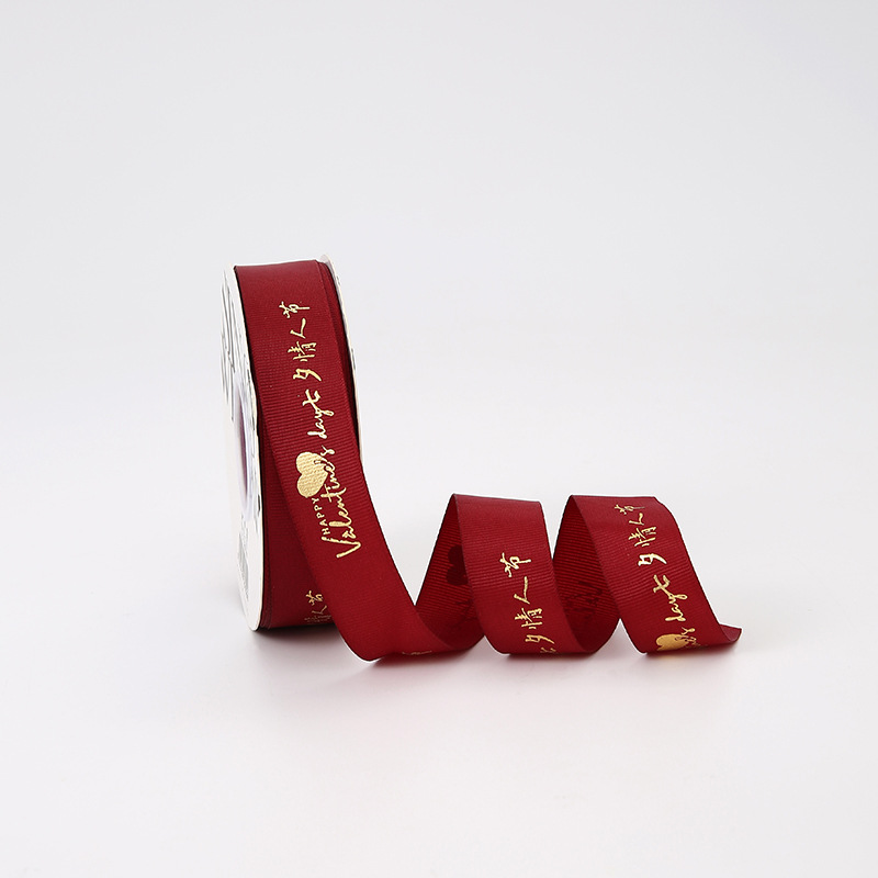 【Product Name】: Happy Chinese Valentine's Day Gold-Flecked Ribbon