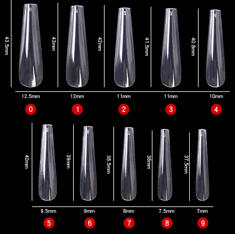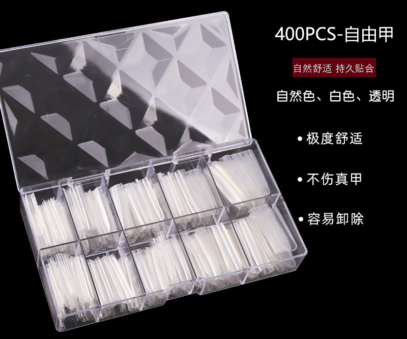 300 pieces full stickers t-type free nail fake nails transparent patch long ballet 4.4cm super long hot nail 中文版