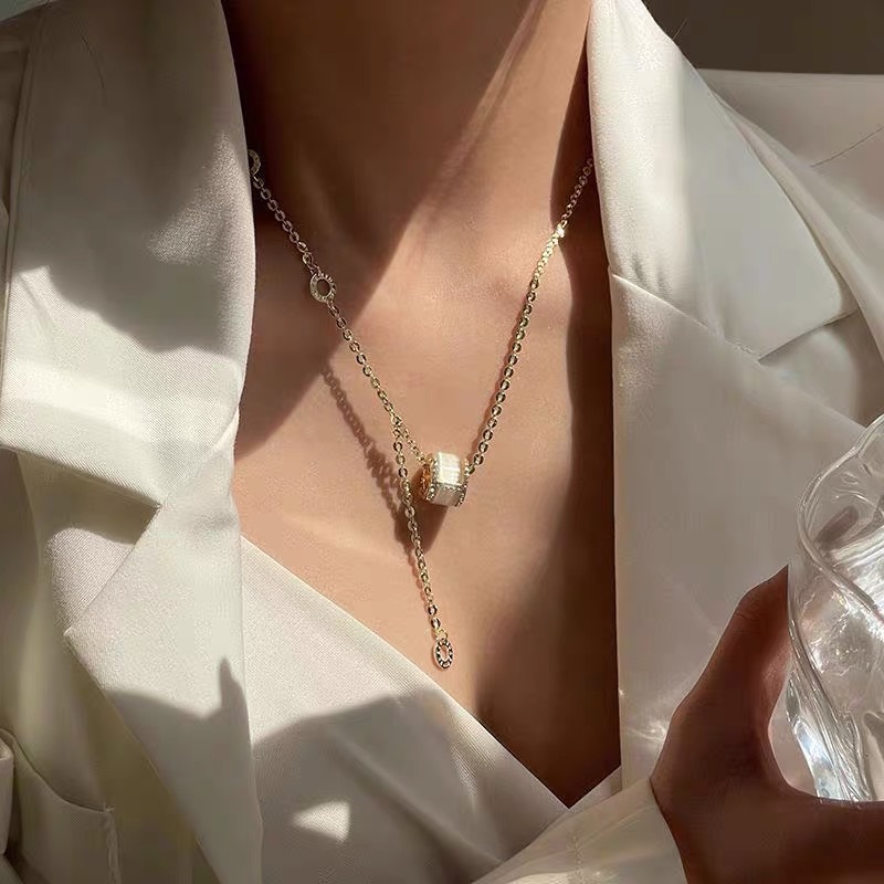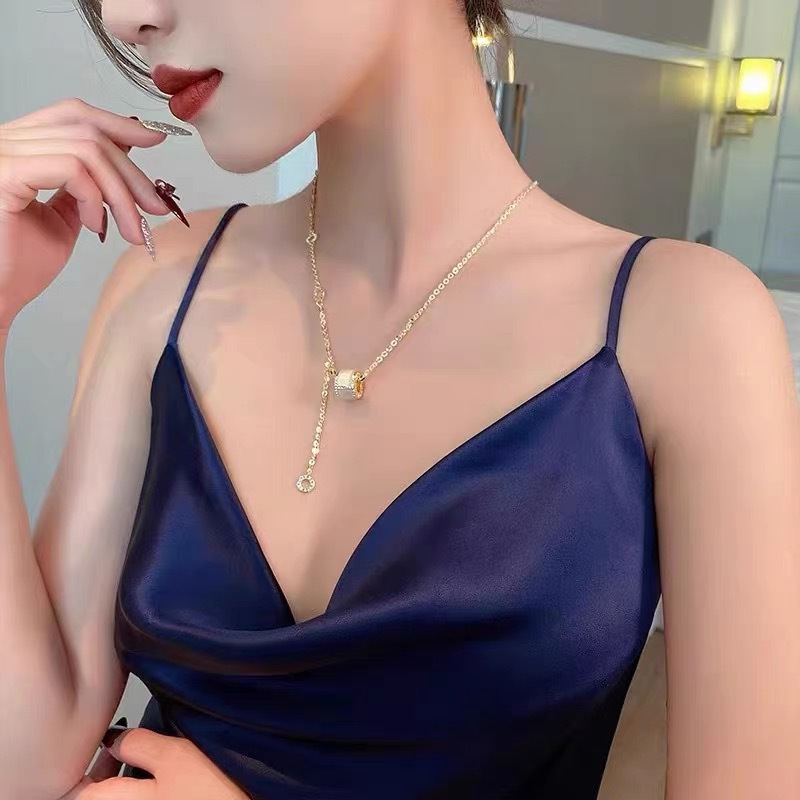 douyin online influencer hot sale opal big thin waist titanium steel no fading necklace female light luxury minority clavicle chain wholesale 中文版