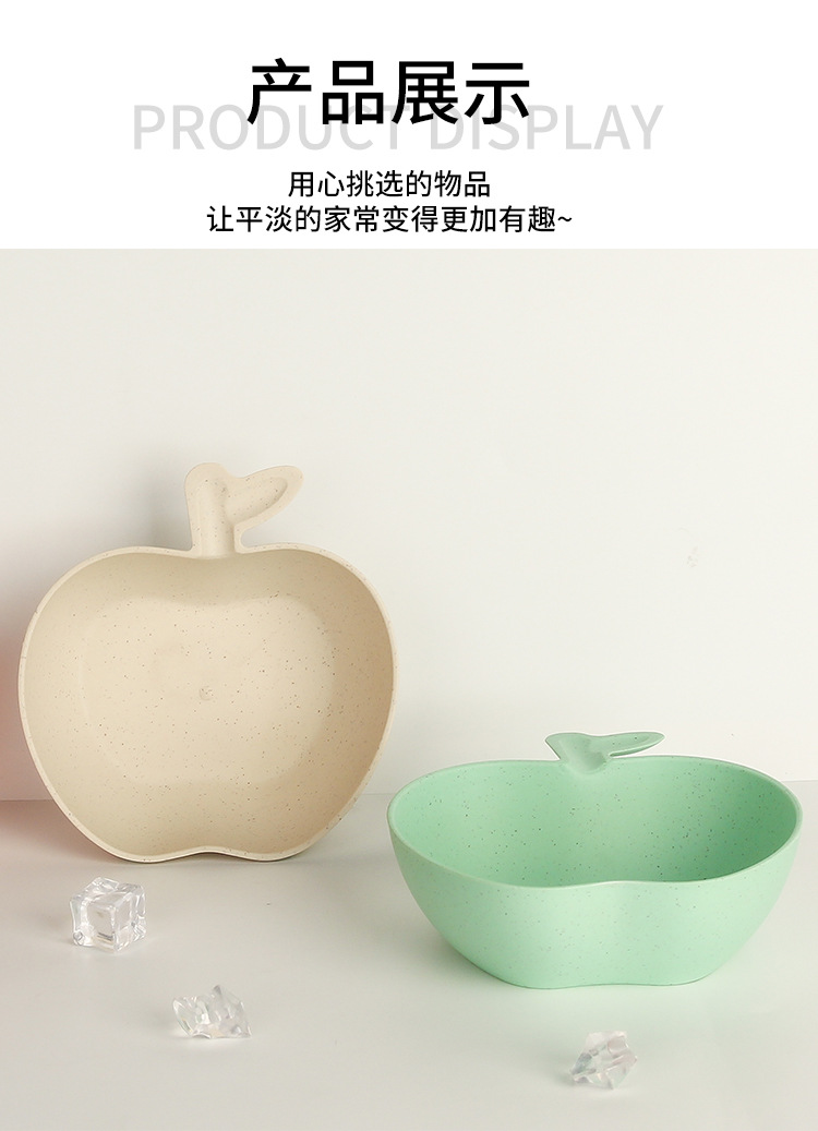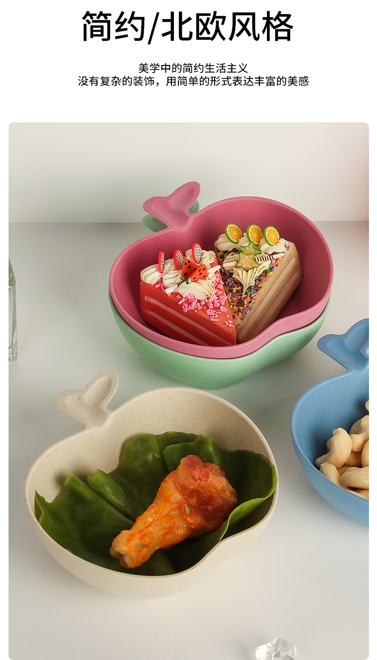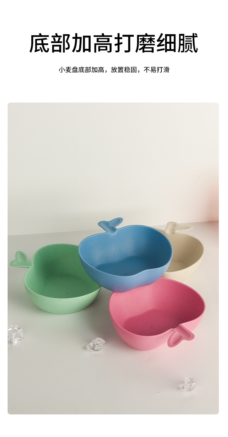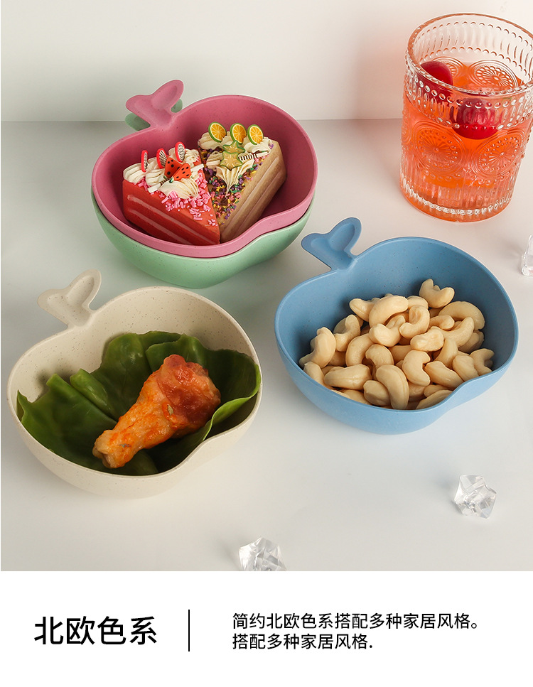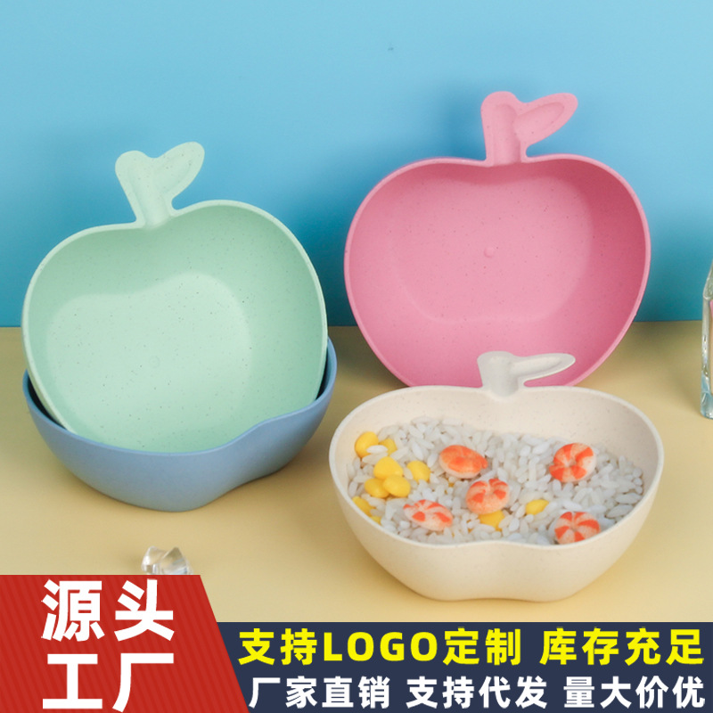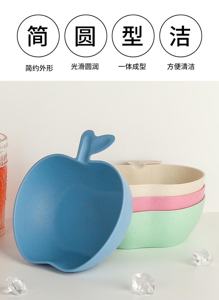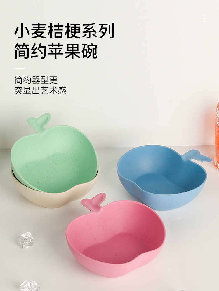 Wheat Straw Tableware Bowl Household Rice Risotto Bowl Salad Bowl Solid Color Apple Shape Bowl Good-looking
