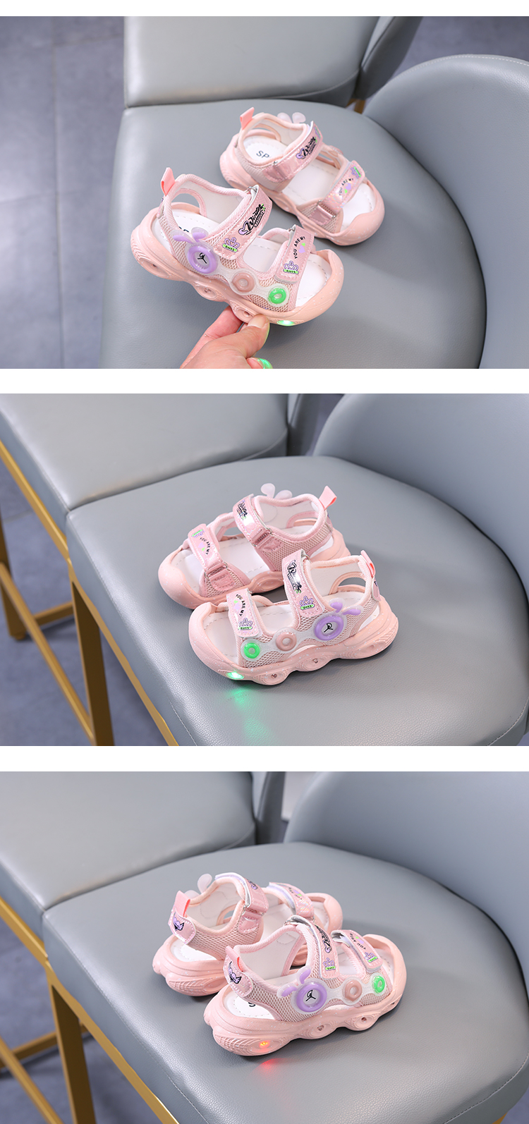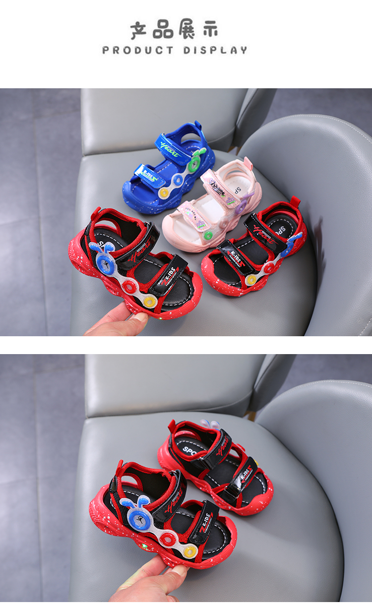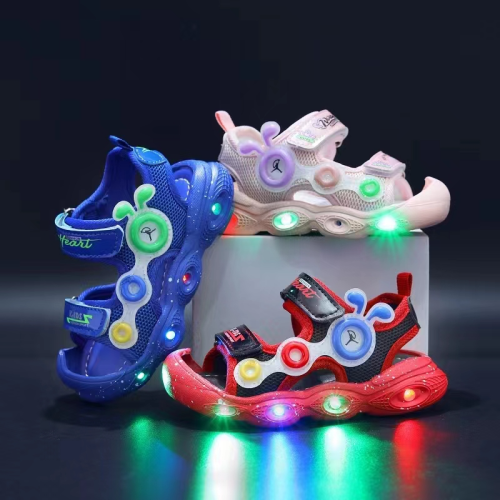 children's closed toe sandals boys cartoon caterpillar luminous shoes summer new baby girl beach shoes soft bottom toddler