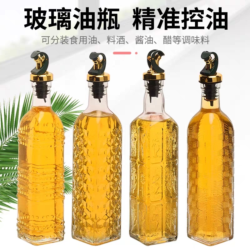 transparent glass automatic opening and closing nozzle oil bottle leak-proof household kitchen soy sauce bottle large vinegar pot seasoning bottle
