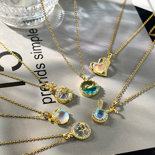 x1705# sun moon star hollow necklace