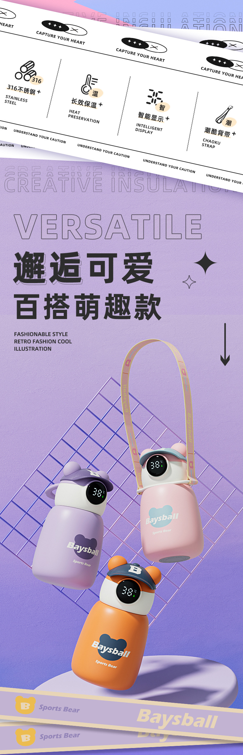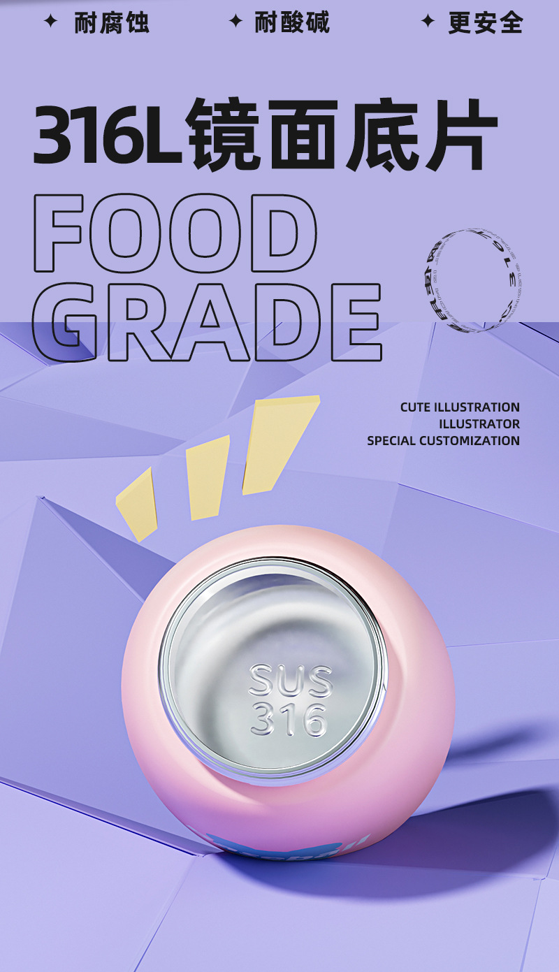 new smart 316 stainless steel vacuum cup good-looking portable children student water cup large capacity cup 中文版