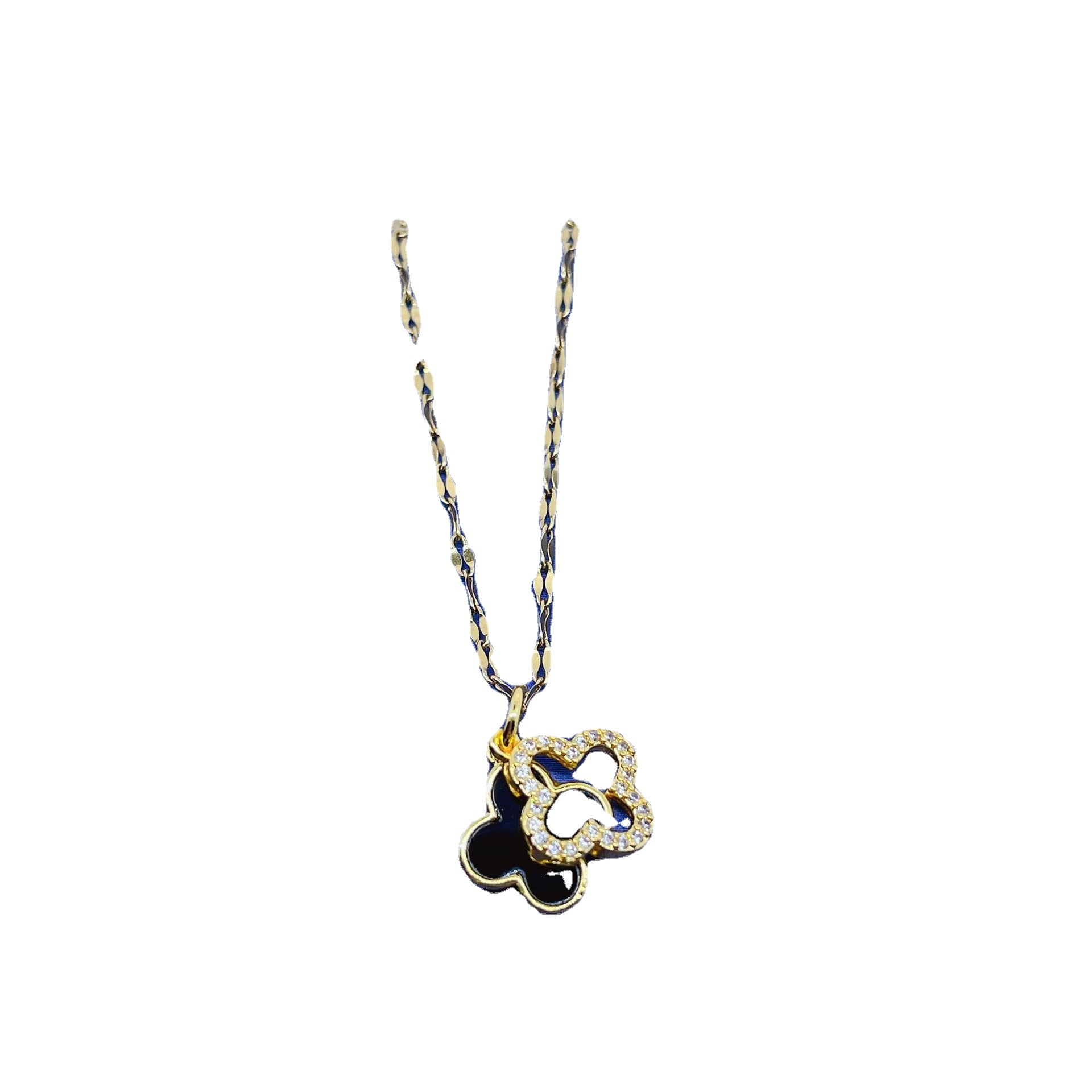 titanium steel new diamond four-leaf clover necklace female temperament female high sense double-sided shell clavicle chain explosion 中文版