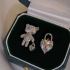 sterling silver needle korean asymmetric rhinestone heart bear earrings graceful online influencer fashion design sense earrings earrings 中文版
