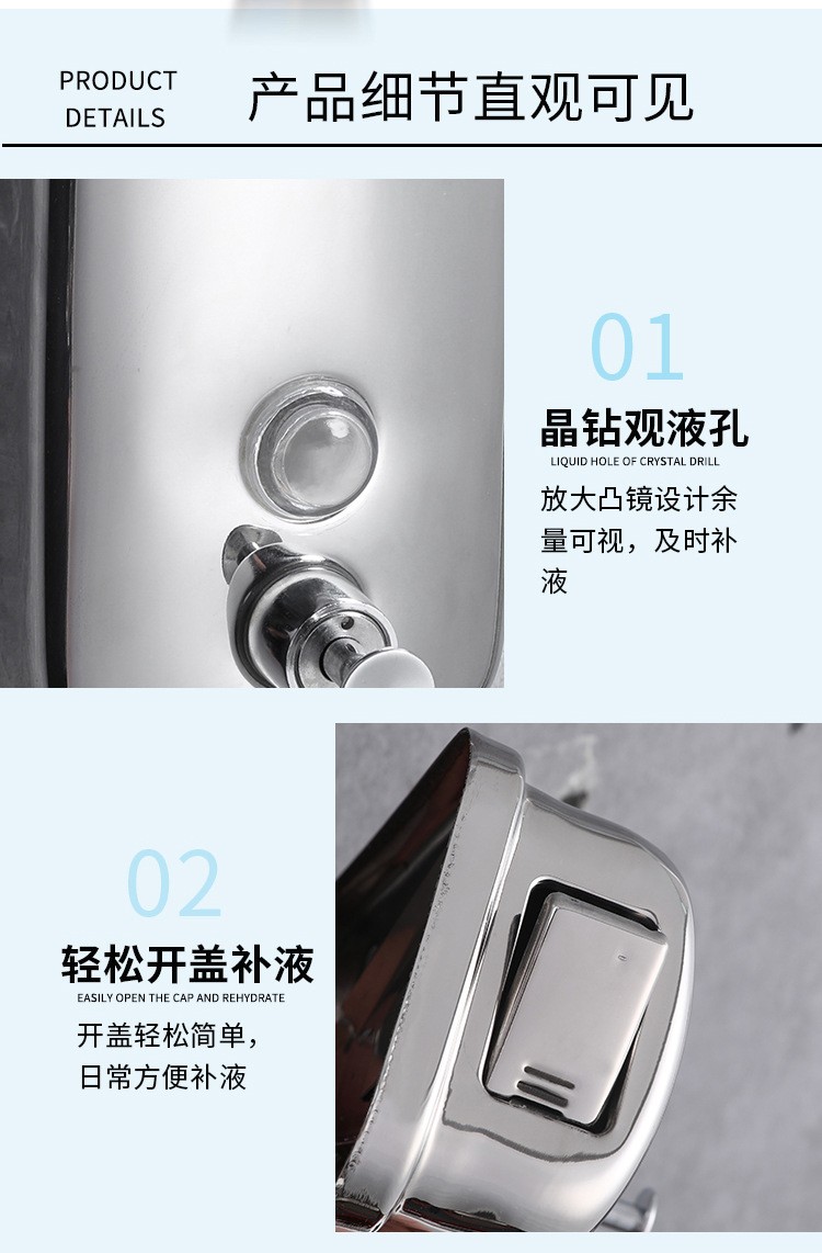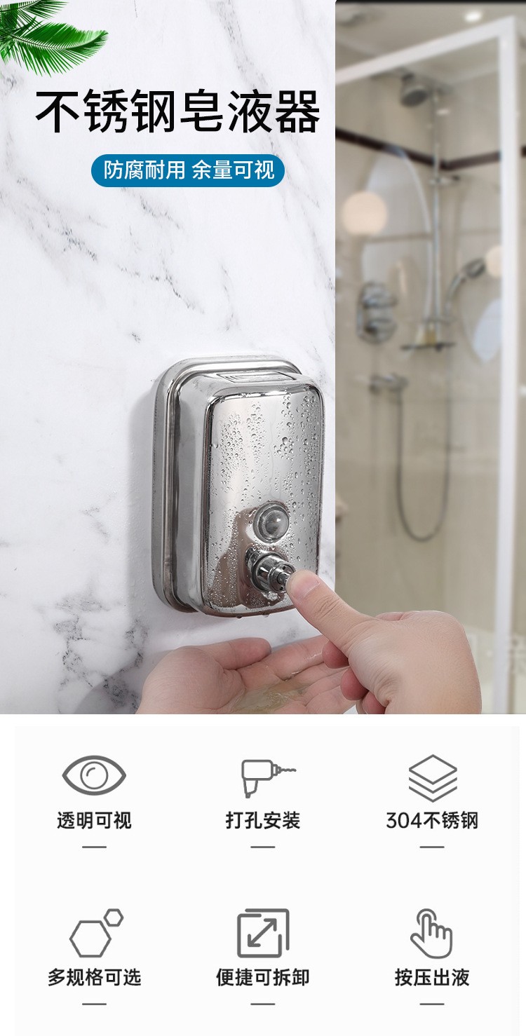 Stainless steel soap dispenser Public Toilet Bathroom Wall Punch Hotel Press Soap Dispenser Hand Sanitizer Container