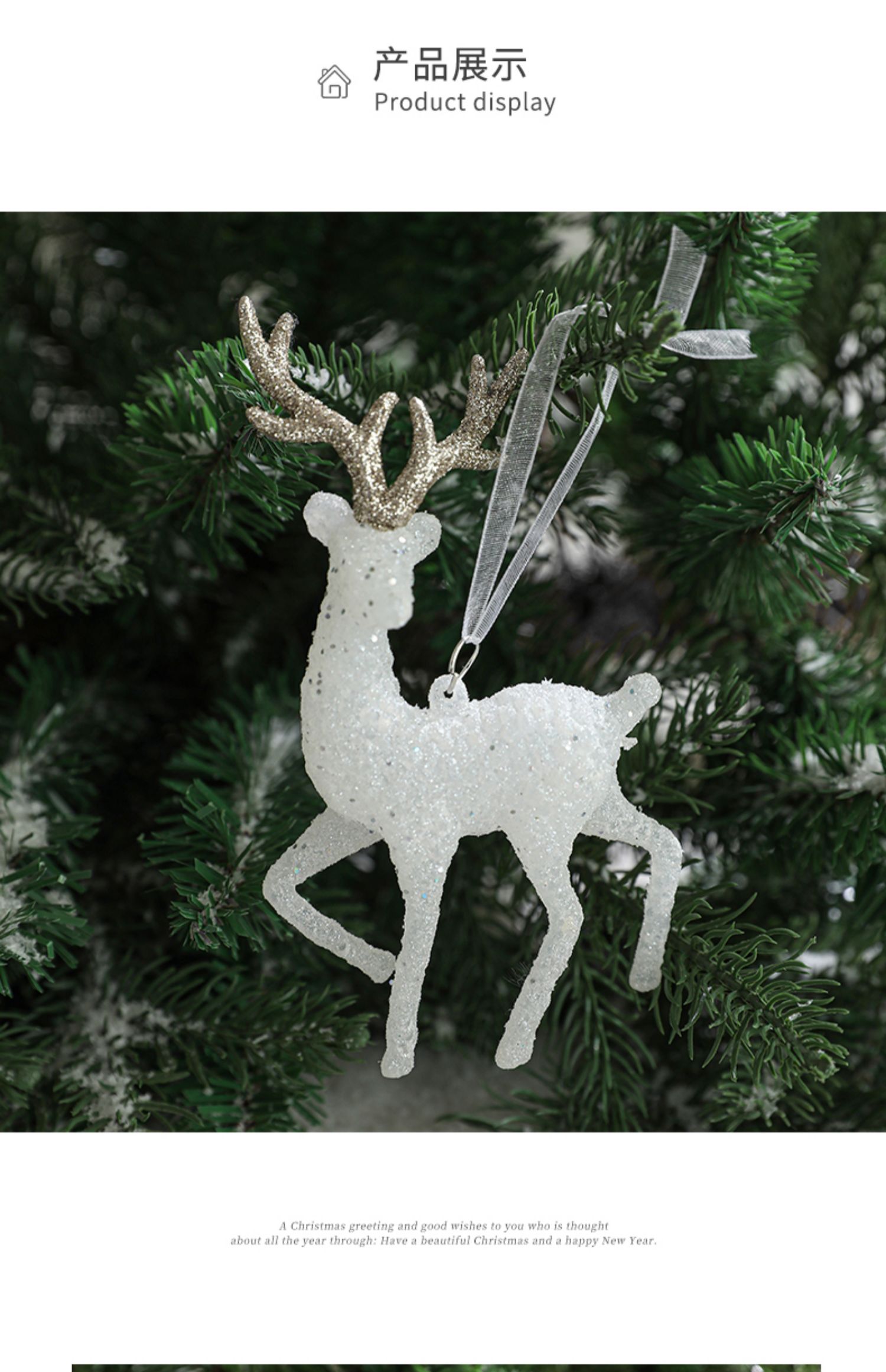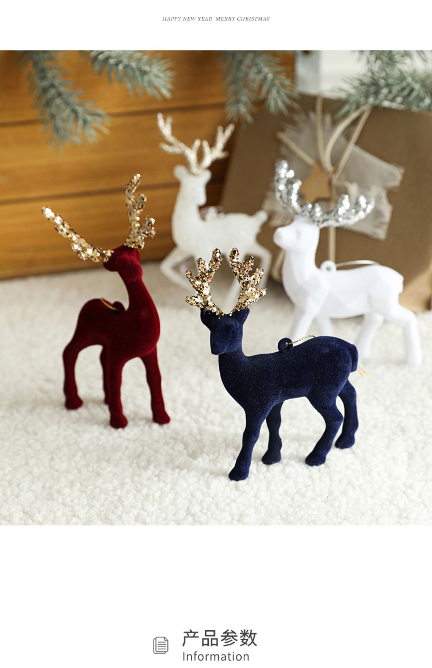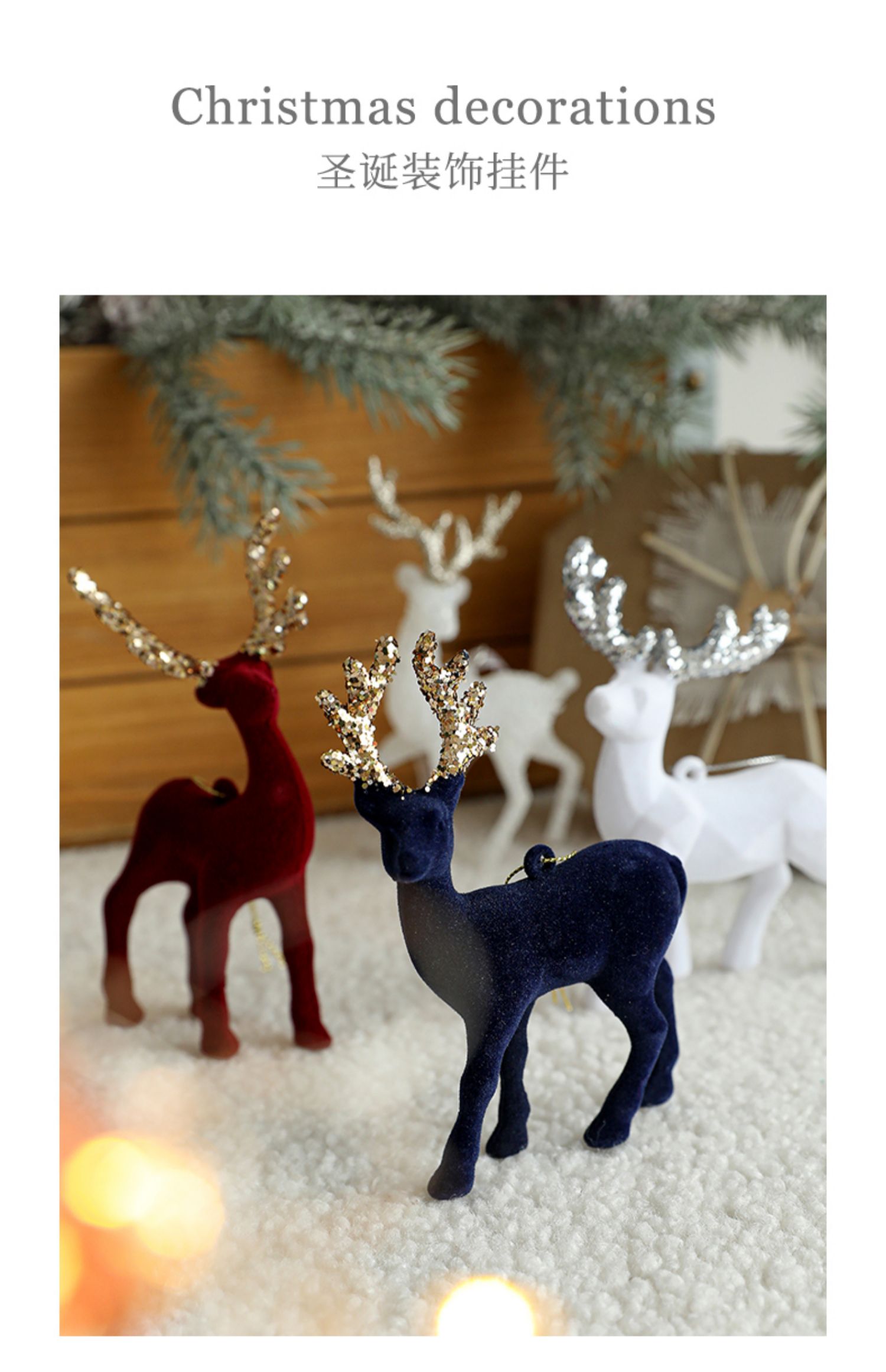 cistmas tree red floing elk pendant cistmas white glitter elk cake decoration new decorations 中文版
