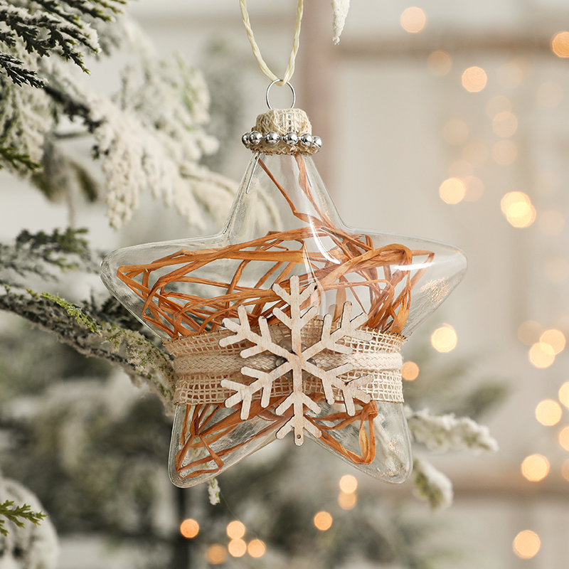 christmas tree decorations transparent glass snowflake christmas hanging ball white old snowman five-pointed star pendant christmas 中文版