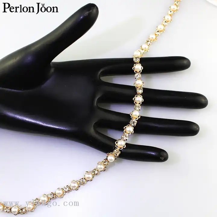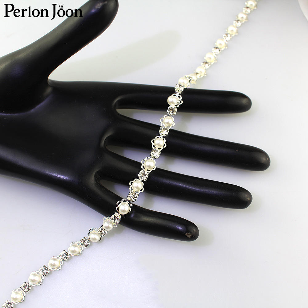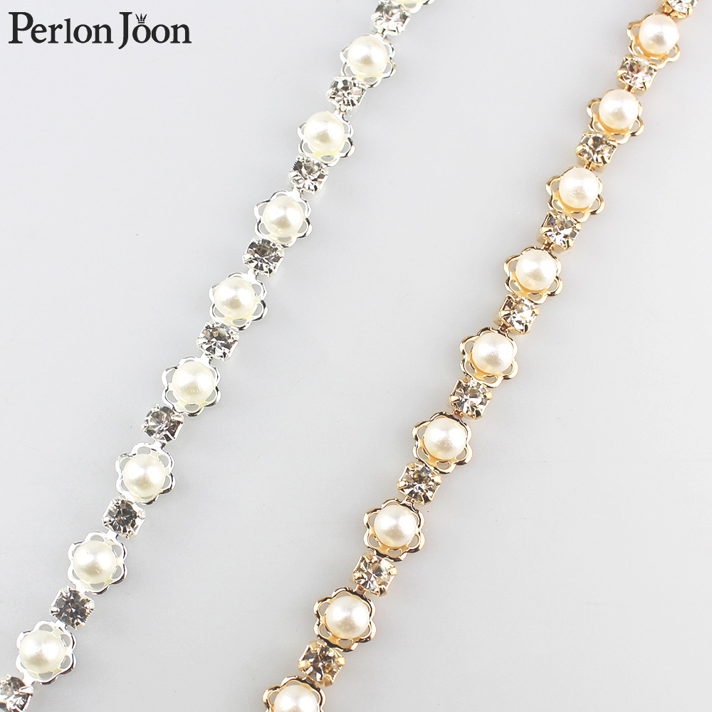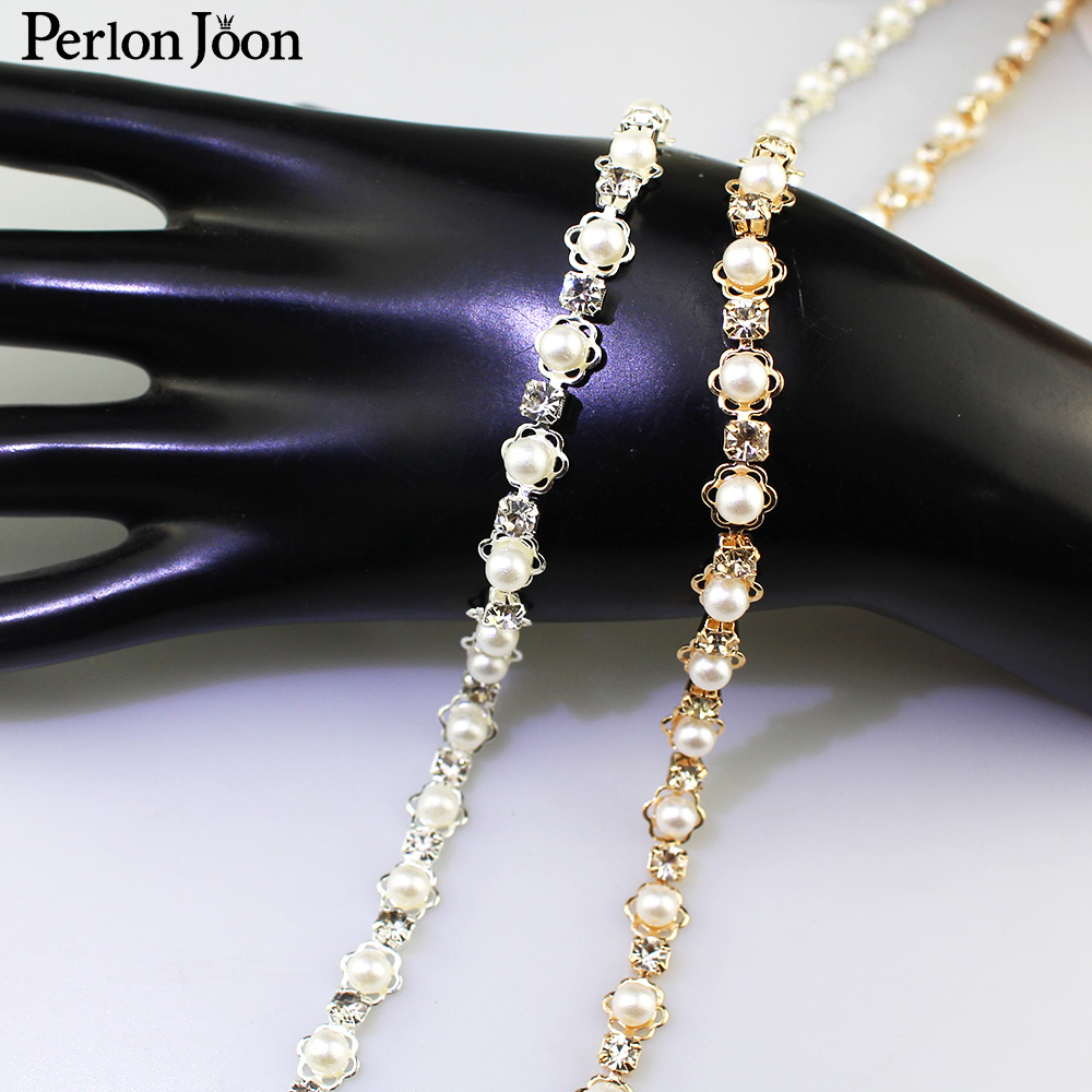 ML120 Diy Decoration Sewing Crafts Garment Accessories Inlaid Pearl Beaded Applique Crystal Rhinestone Trim Close Cup Chain Roll
