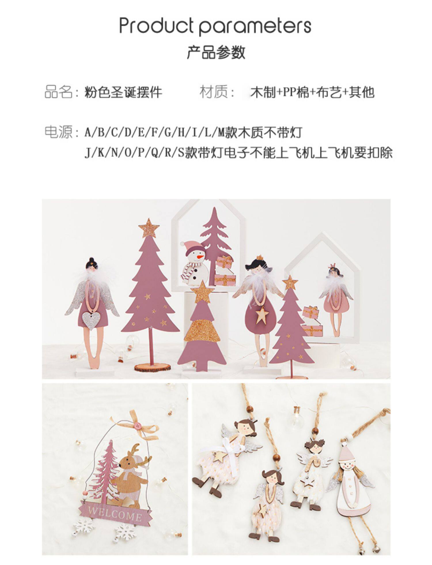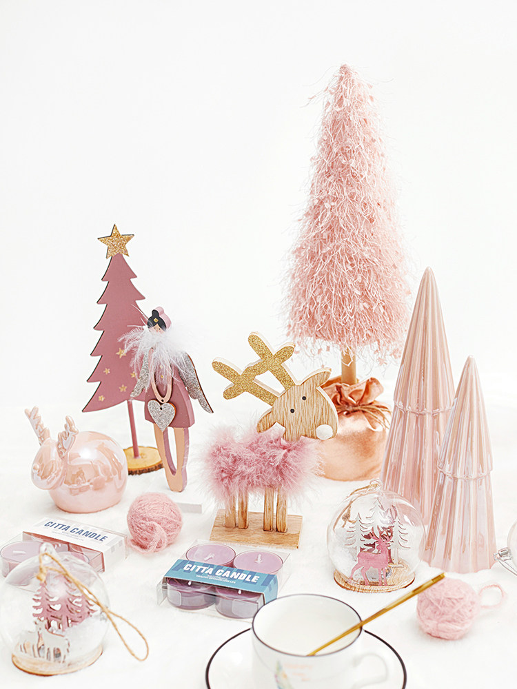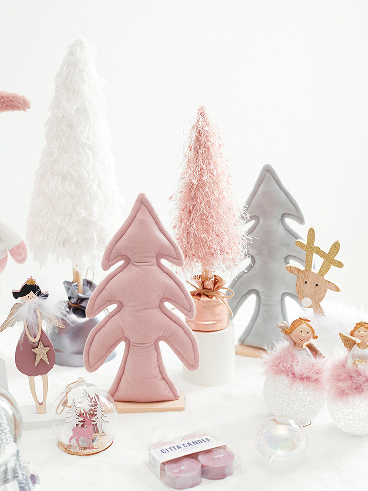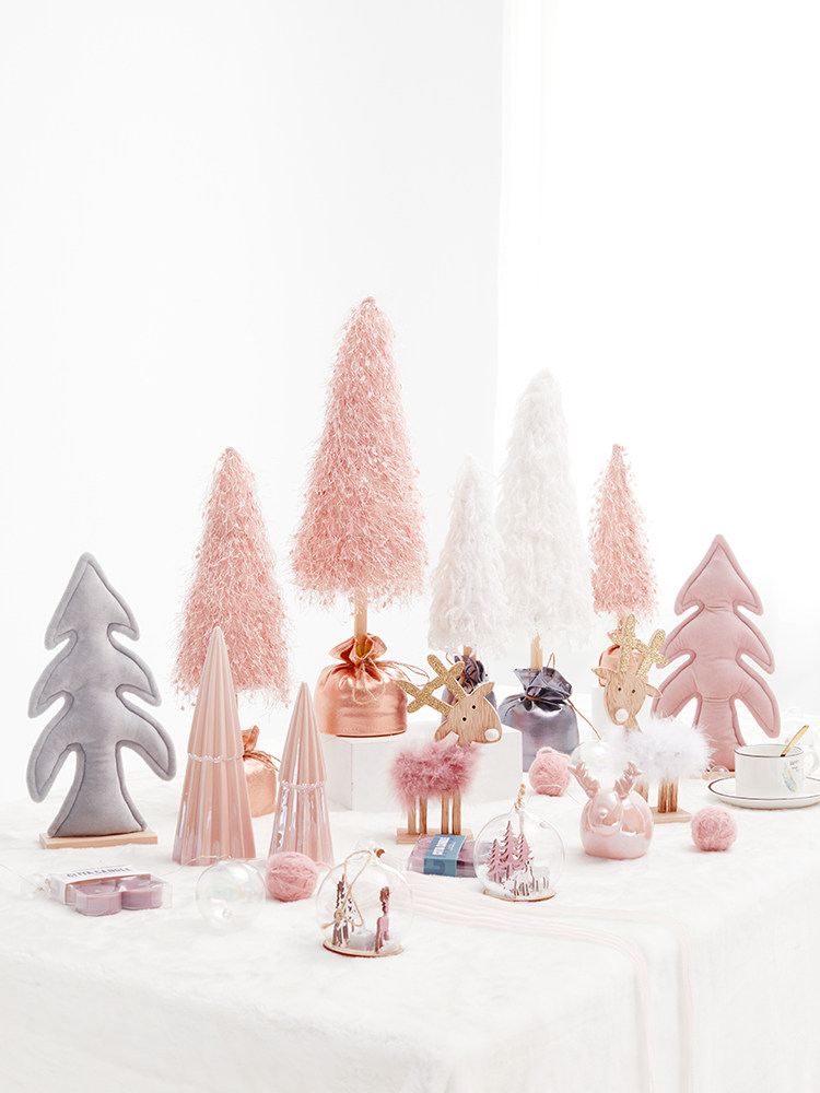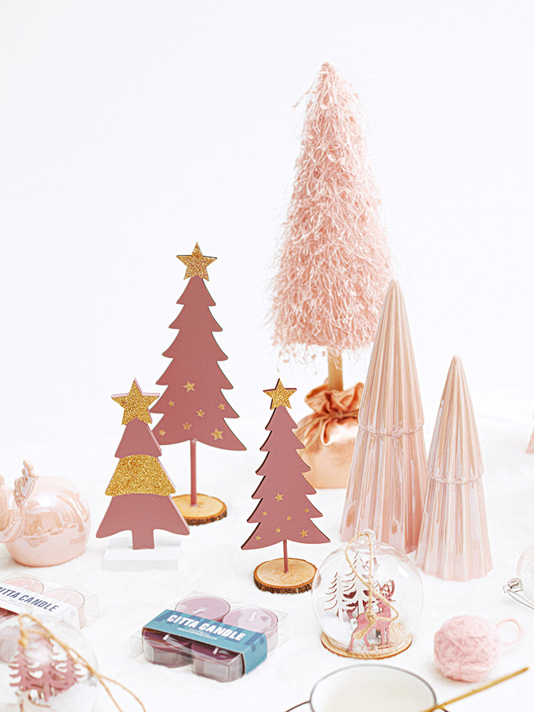 pink light-emitting christmas tree household wooden desktop decoration small package christmas decoration scene layout gift